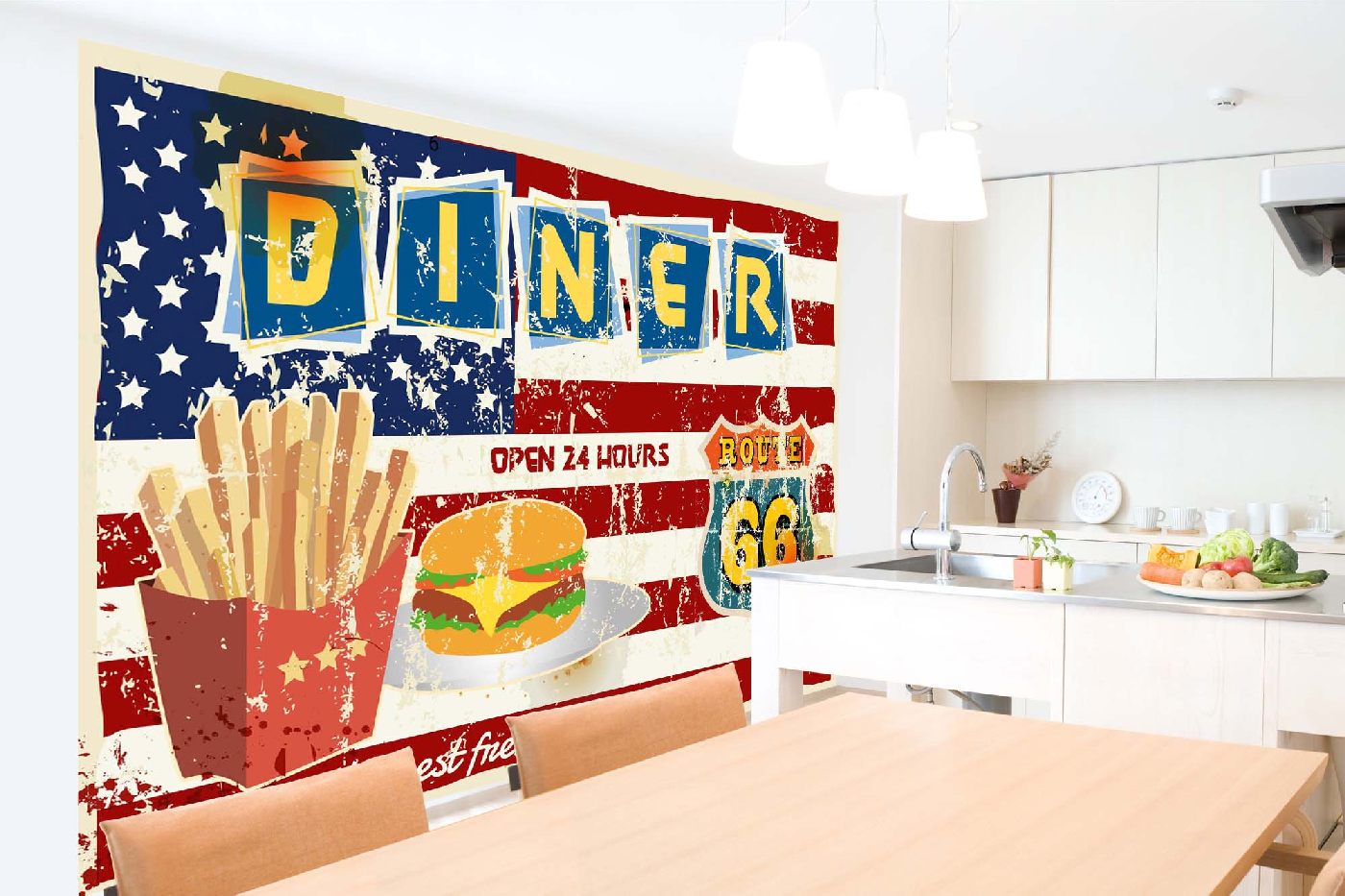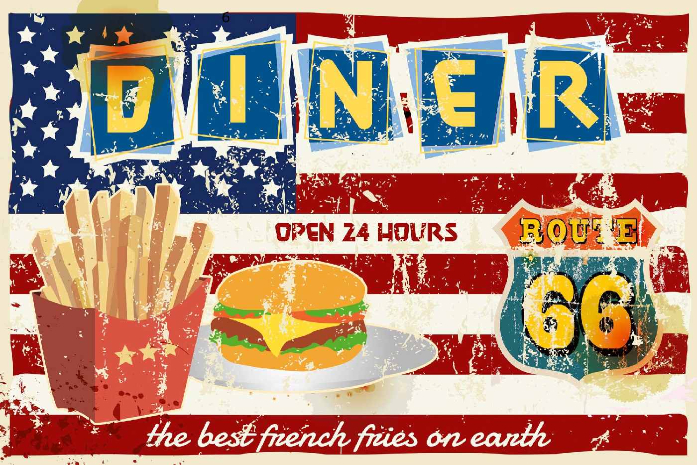 Vlies Fototapete - Retro Abendessen Plakat 375 x 250 cm