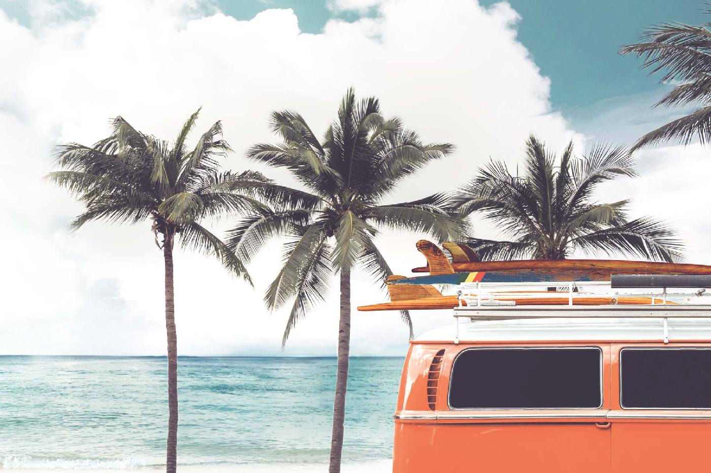 Vlies Fototapete - Retro Auto am Strand 375 x 250 cm