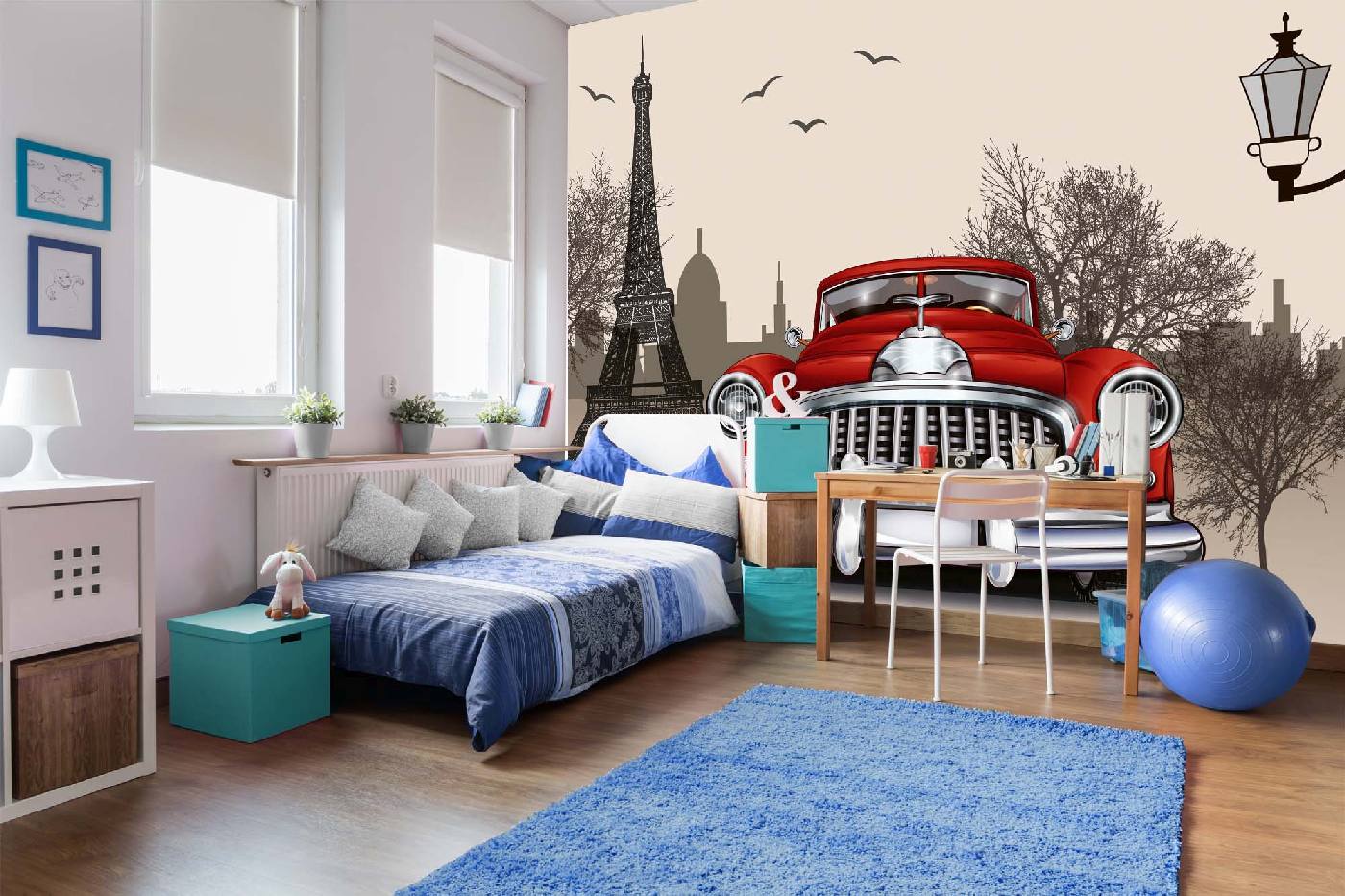 Vlies Fototapete - Retro Auto in Paris 375 x 250 cm