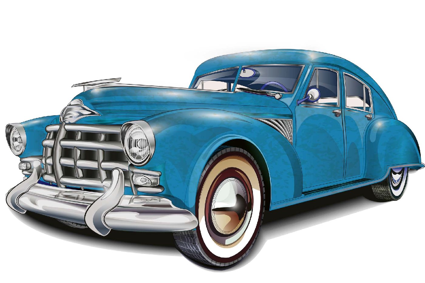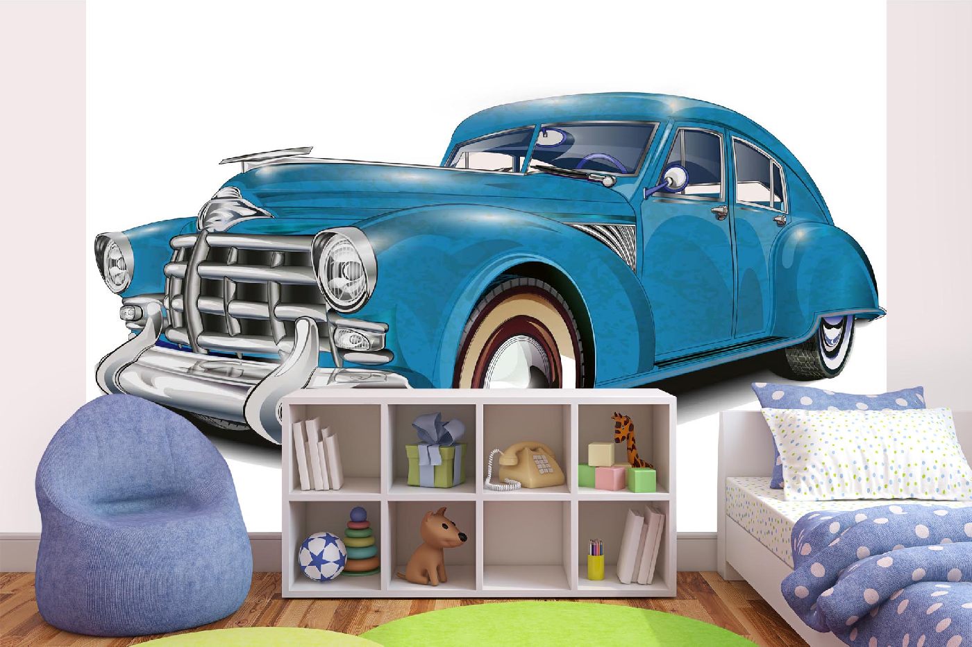 Vlies Fototapete - Retro blaues Auto 375 x 250 cm