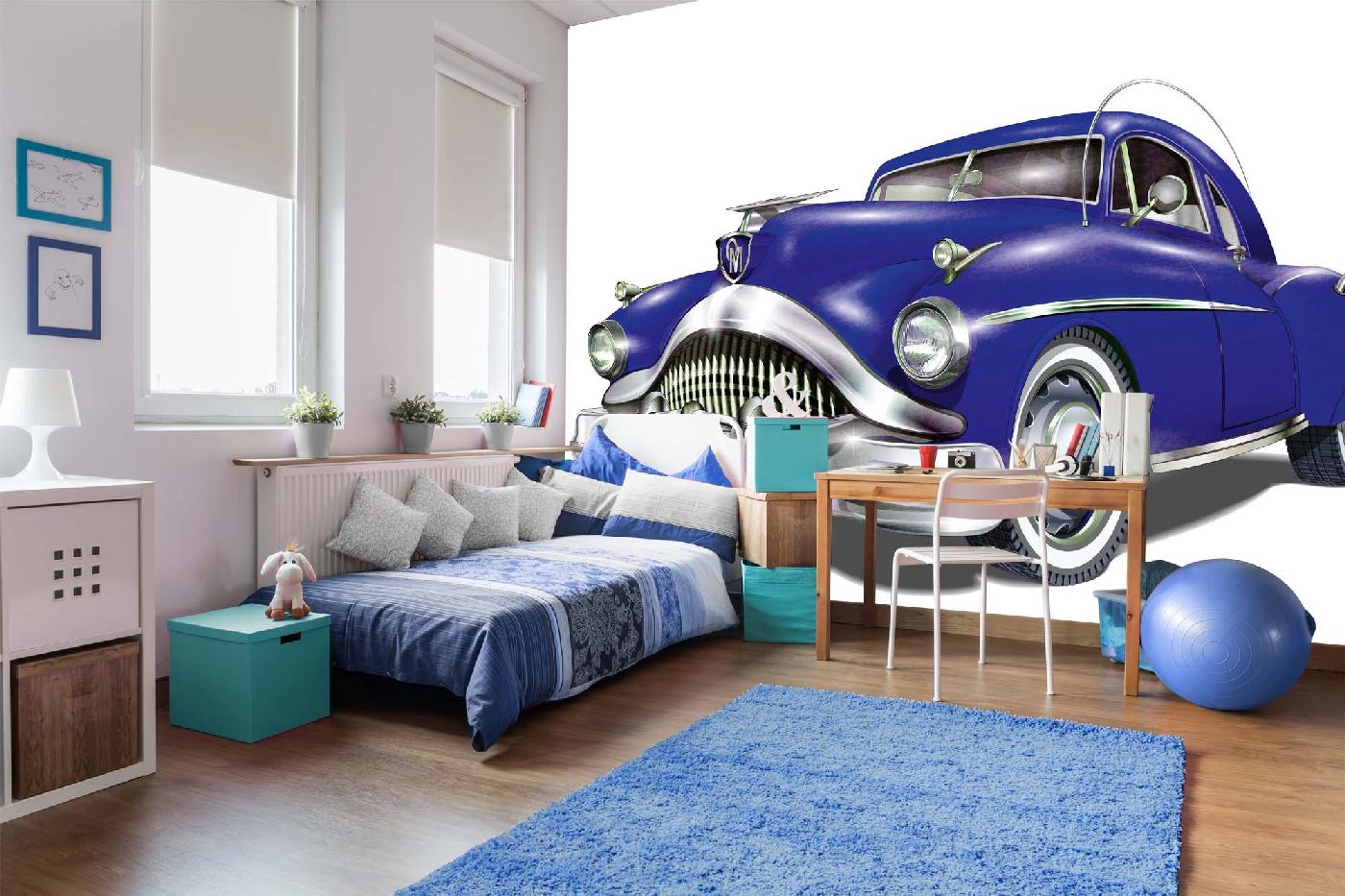 Vlies Fototapete - Retro blaues Auto II 375 x 250 cm