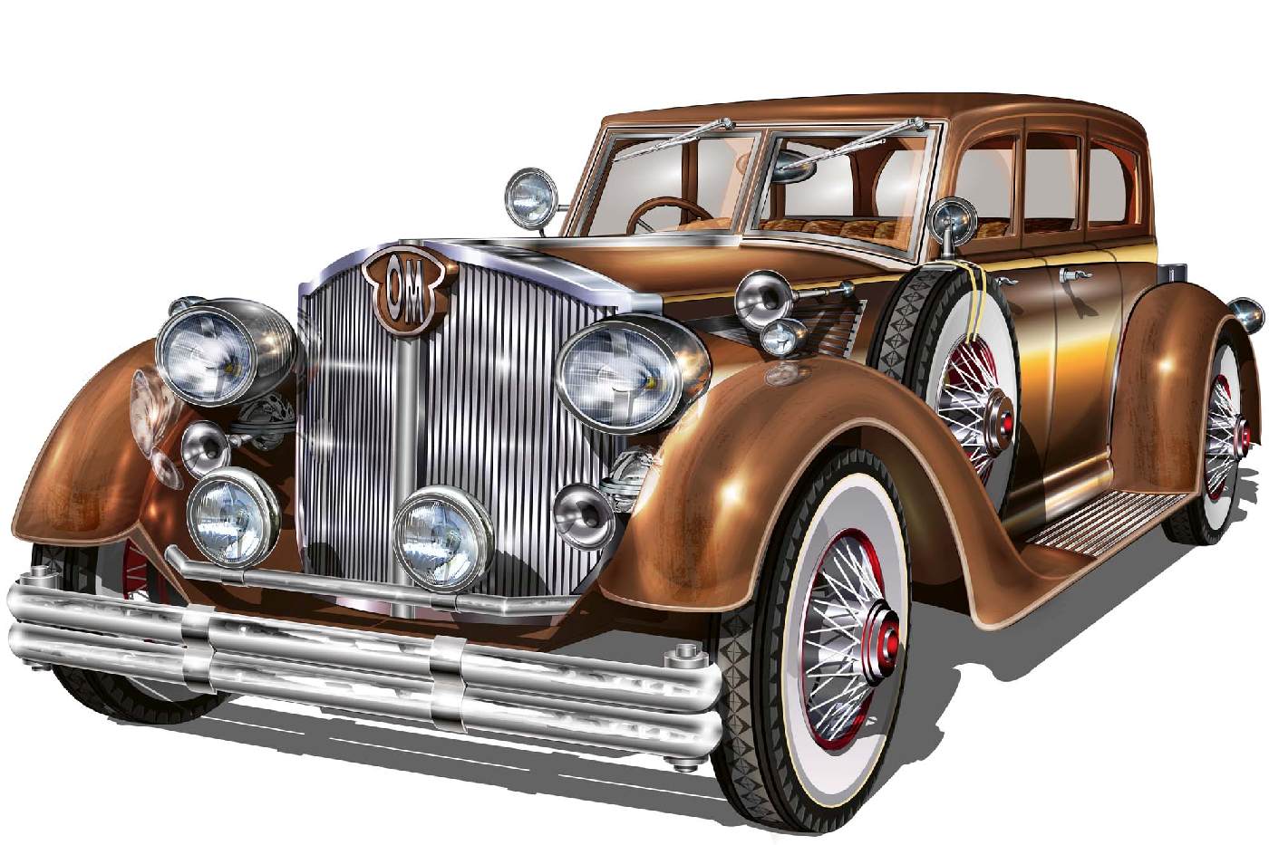 Vlies Fototapete - Retro braunes Auto 375 x 250 cm