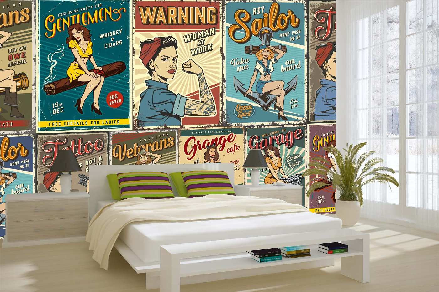 Vlies Fototapete - Retro bunte Plakate 375 x 250 cm