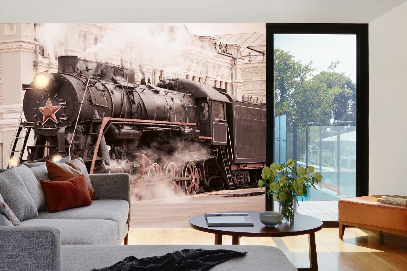 Vlies Fototapete - Retro Dampfzug 375 x 250 cm