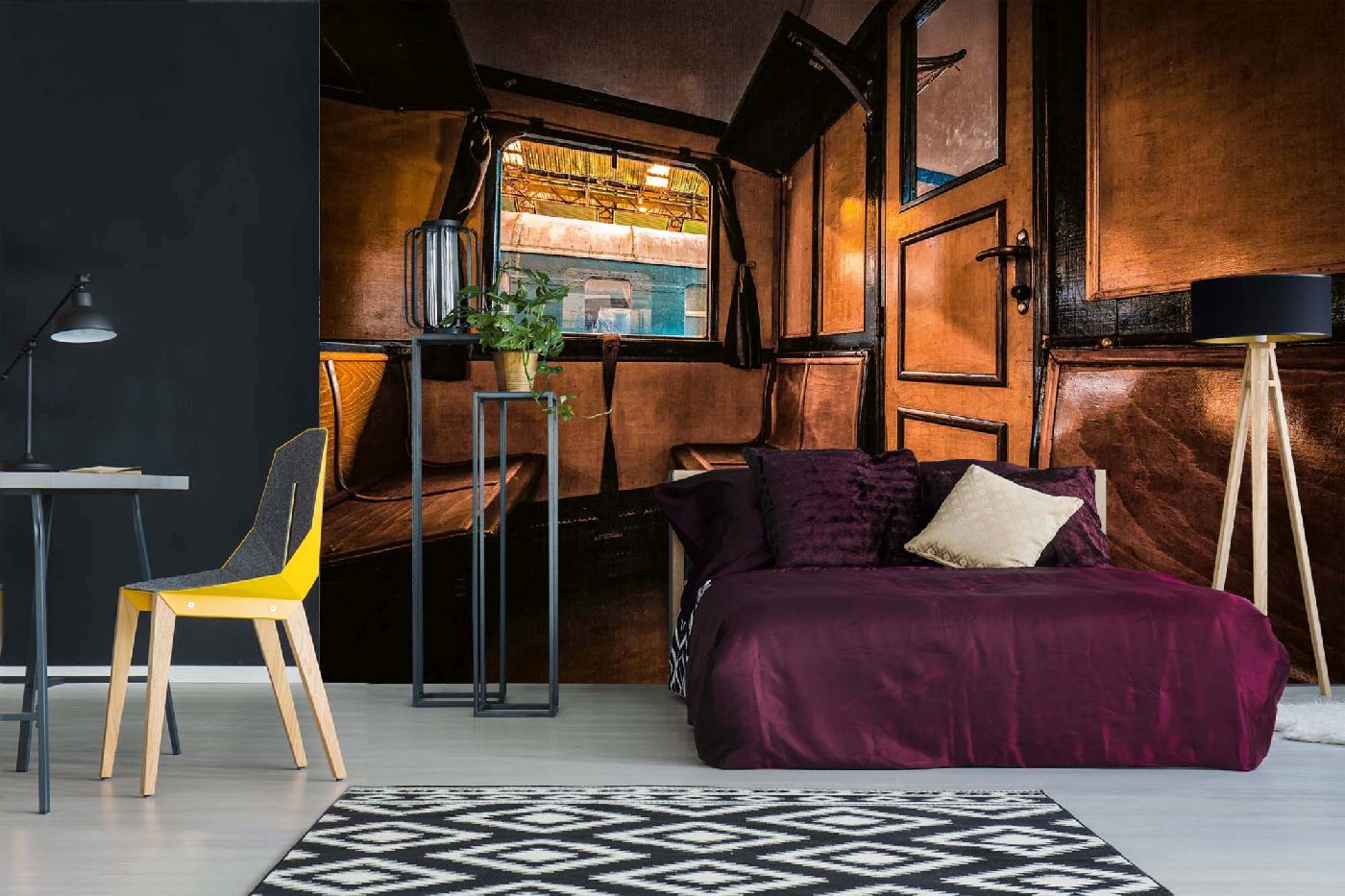 Vlies Fototapete - Retro Zug-Interieur 375 x 250 cm