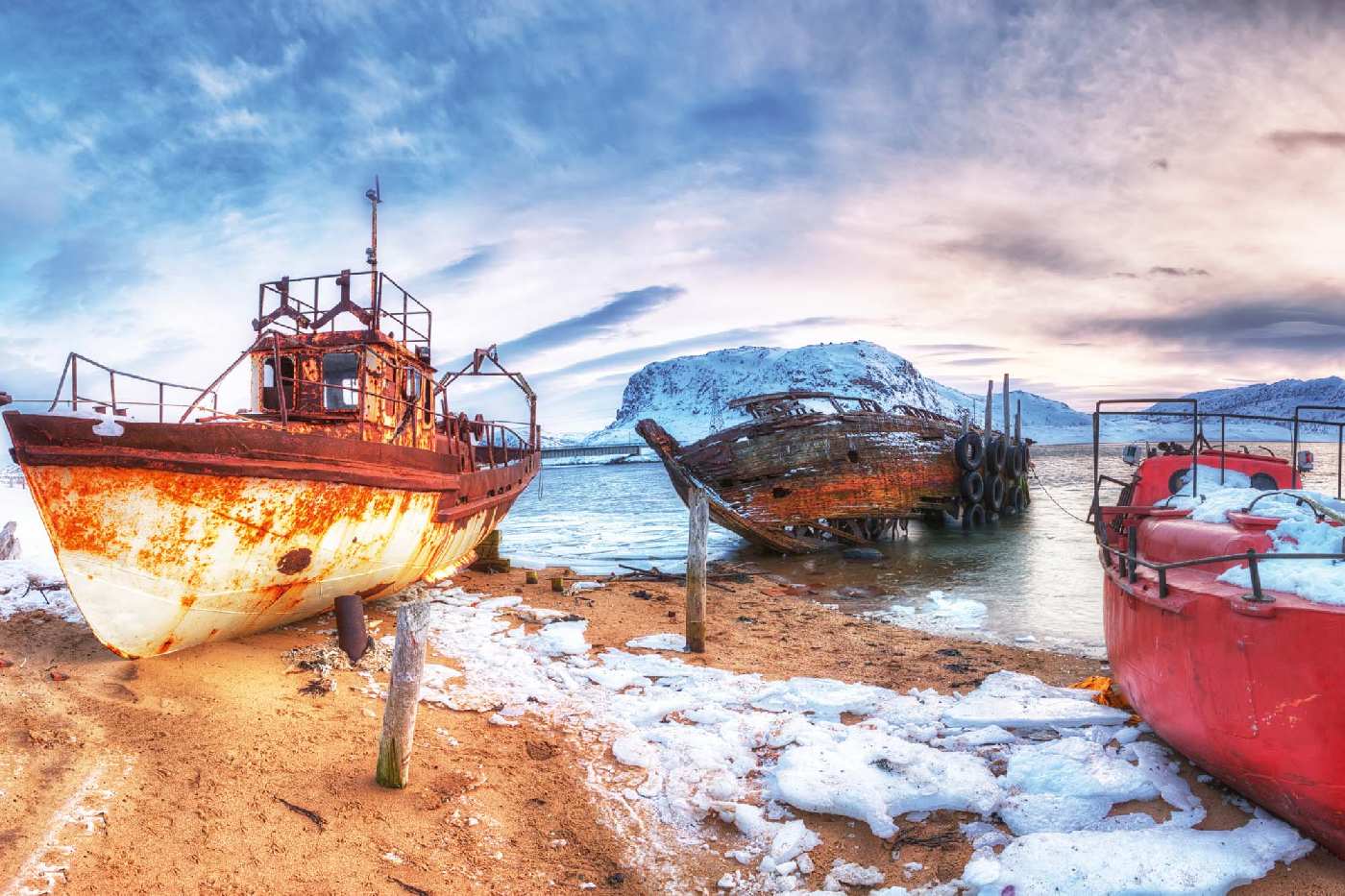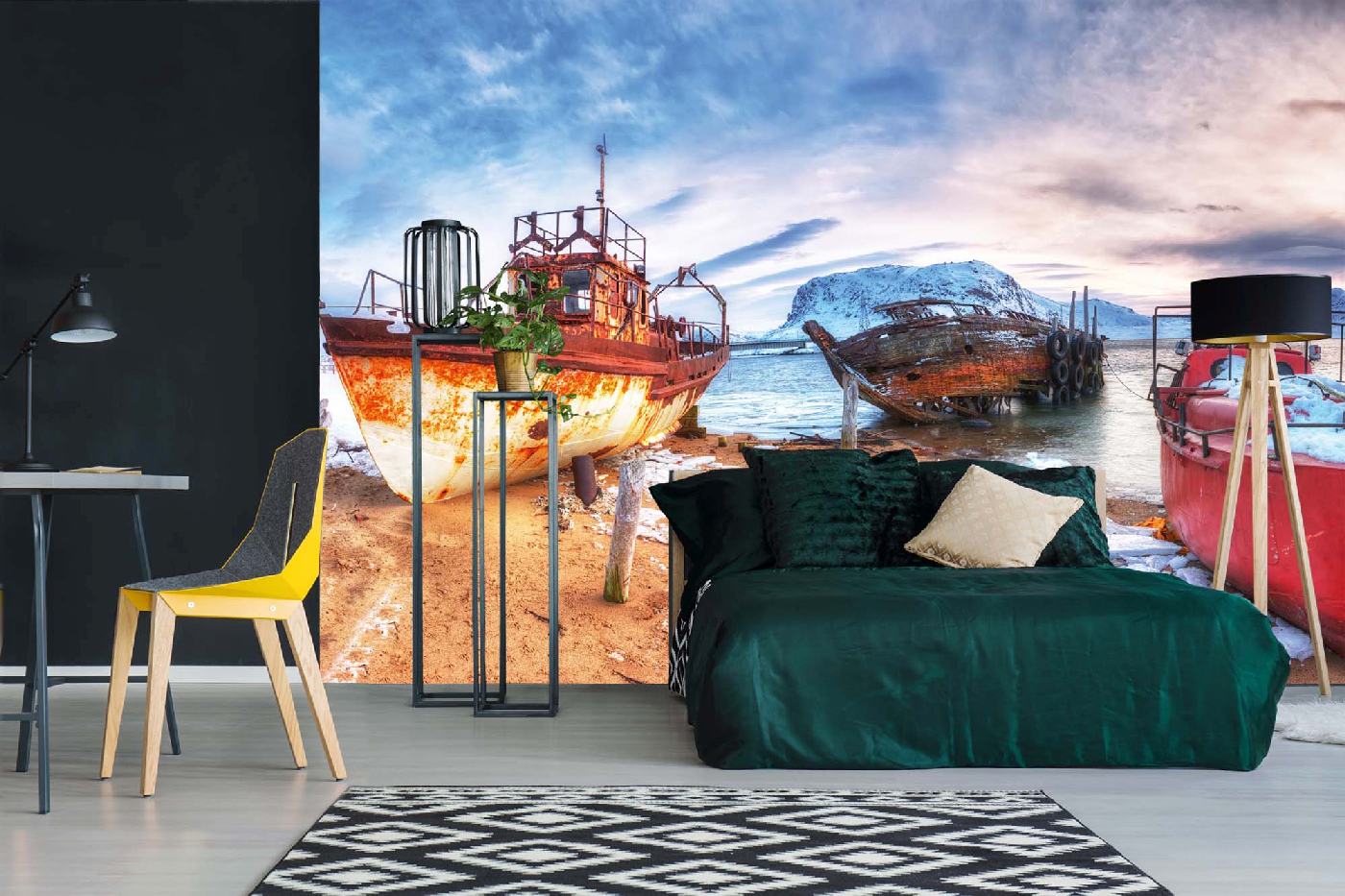 Vlies Fototapete - Rostige Fischerboote 375 x 250 cm
