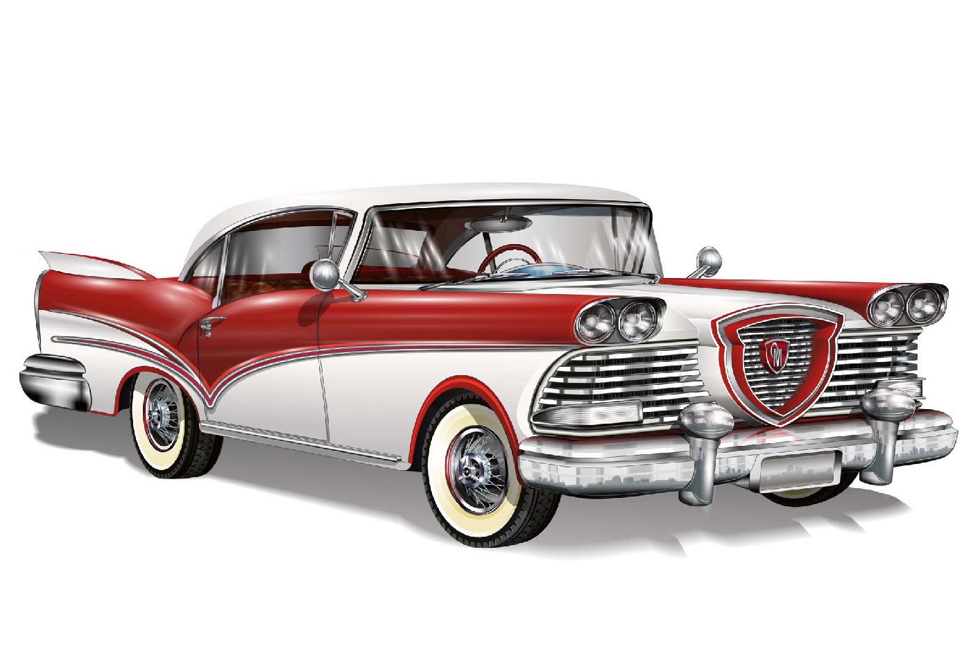 Vlies Fototapete - Rot-weißes Retro Auto 375 x 250 cm