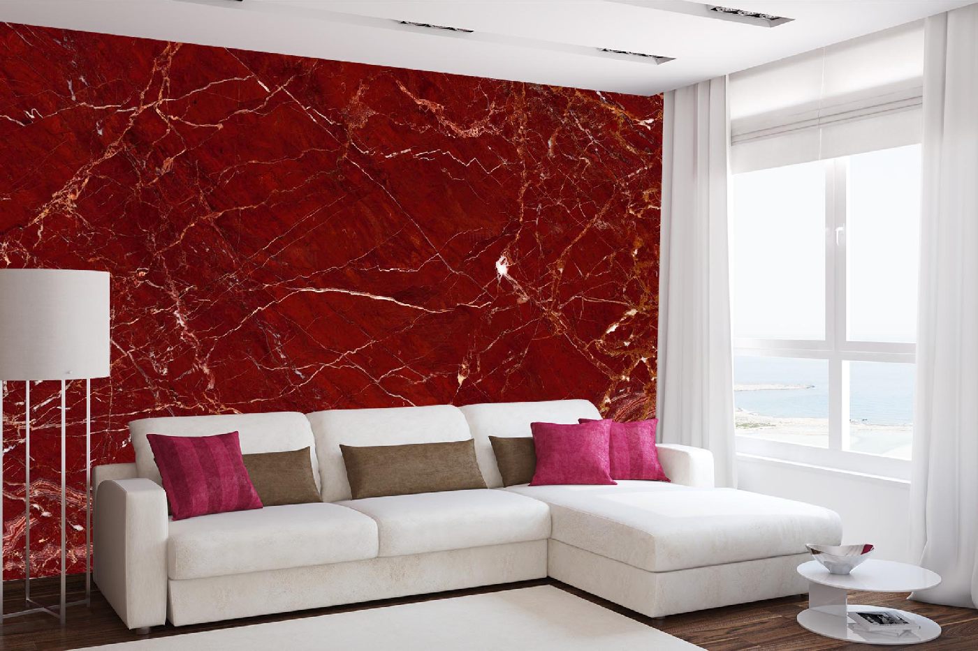 Vlies Fototapete - Roter Marmor 375 x 250 cm