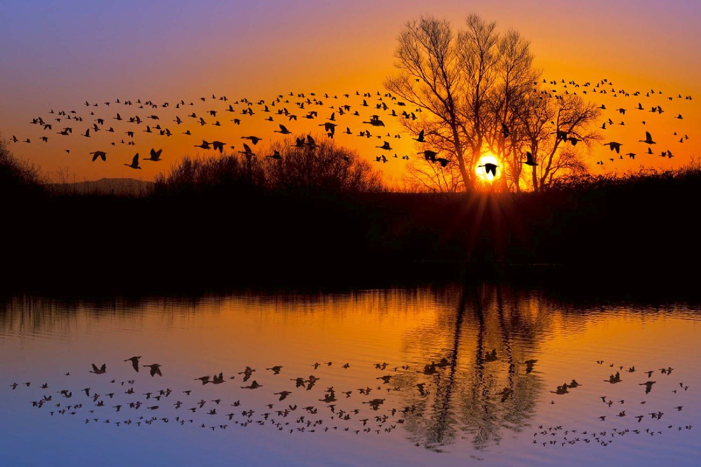 Vlies Fototapete - Schar von Kanada-Gänsen 375 x 250 cm
