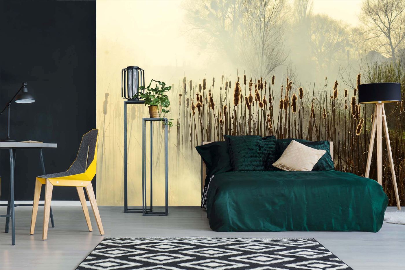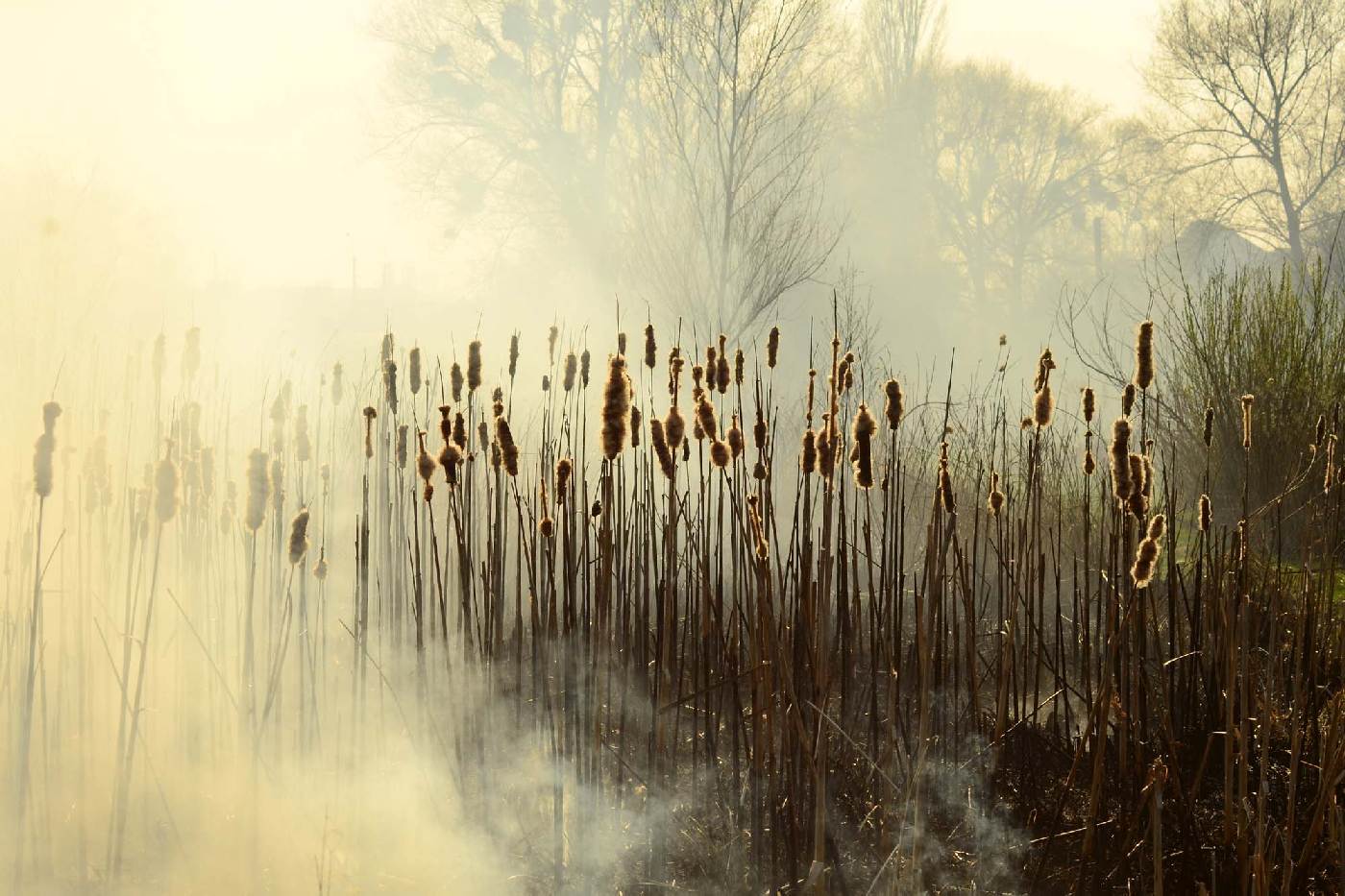 Vlies Fototapete - Schilf im Nebel 375 x 250 cm