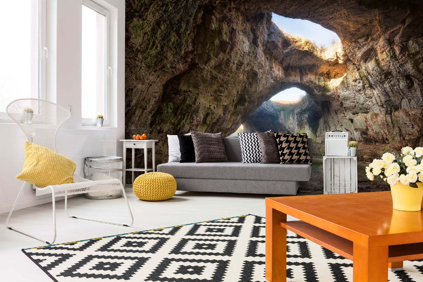 Vlies Fototapete - Schöne Aussicht von der Höhle 375 x 250 cm