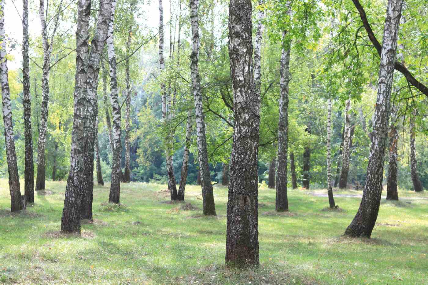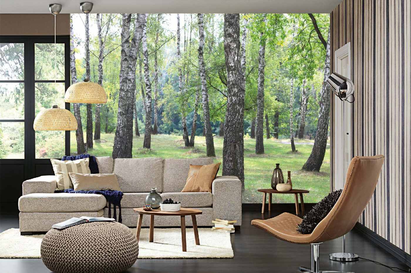 Vlies Fototapete - Schöne Birken im Wald 375 x 250 cm