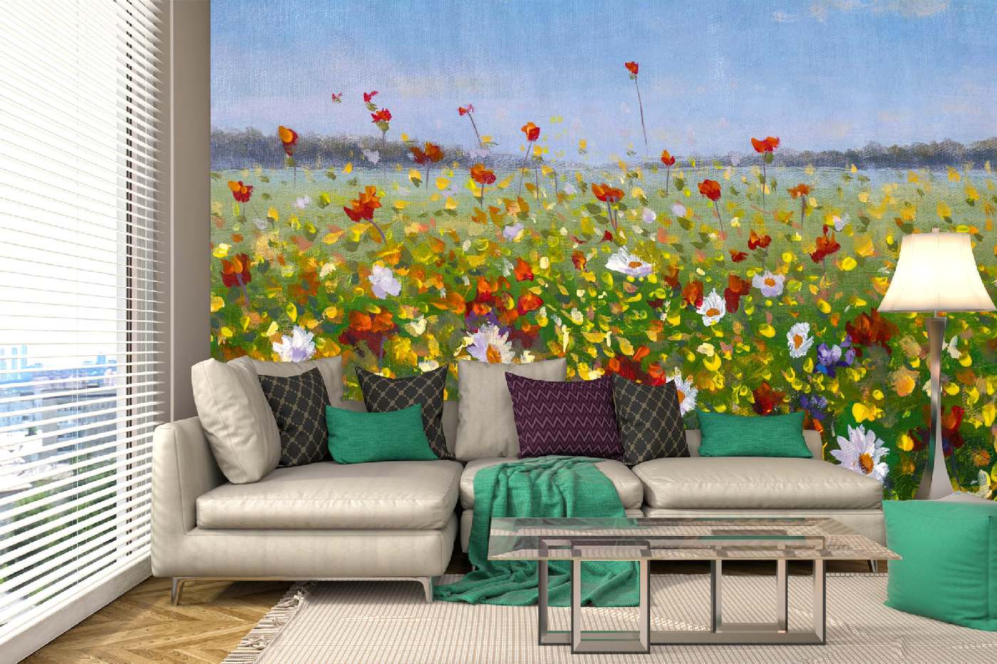 Vlies Fototapete - Schöne Feldblumen auf Leinwand 375 x 250 cm