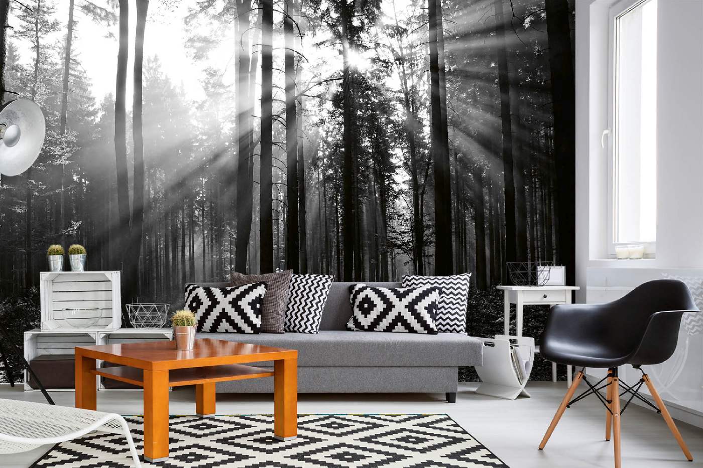 Vlies Fototapete - Schwarz-Weiß-Wald 375 x 250 cm
