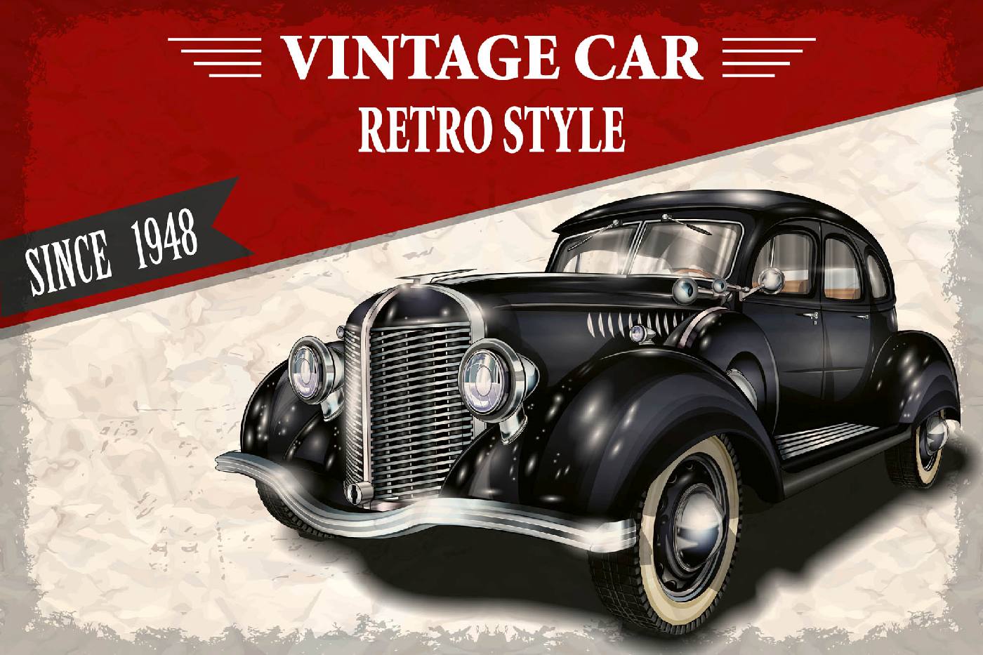 Vlies Fototapete - Schwarzes Auto im Retro-Stil 375 x 250 cm