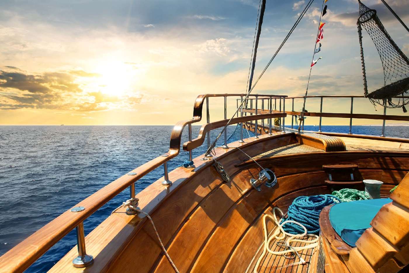 Vlies Fototapete - Segelboot aus Holz 375 x 250 cm