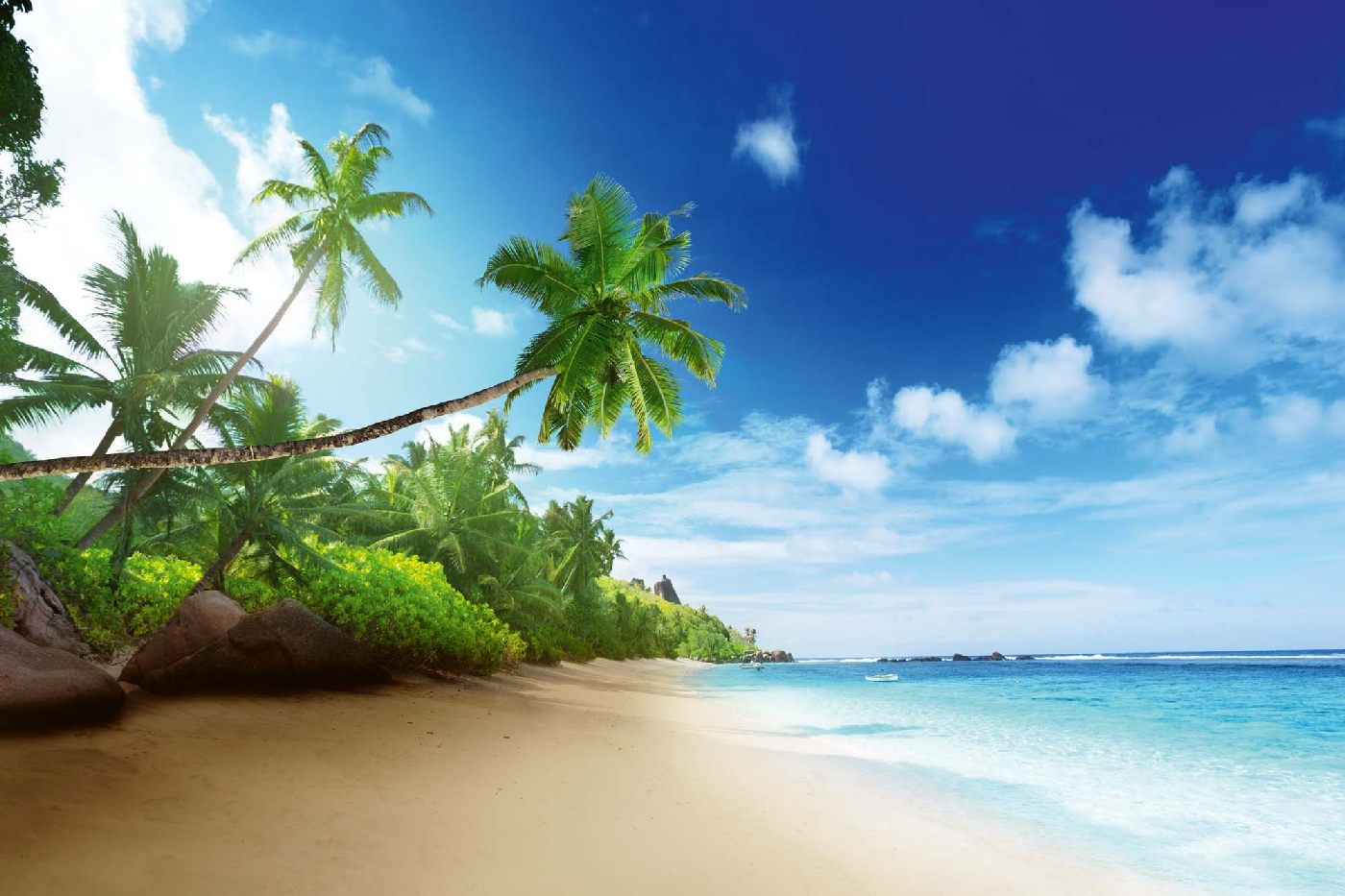 Vlies Fototapete - Seychellen Strand 375 x 250 cm