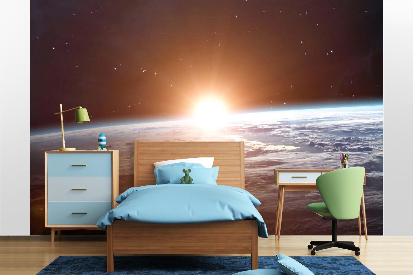Vlies Fototapete - Sonnenaufgang auf der Erde 375 x 250 cm