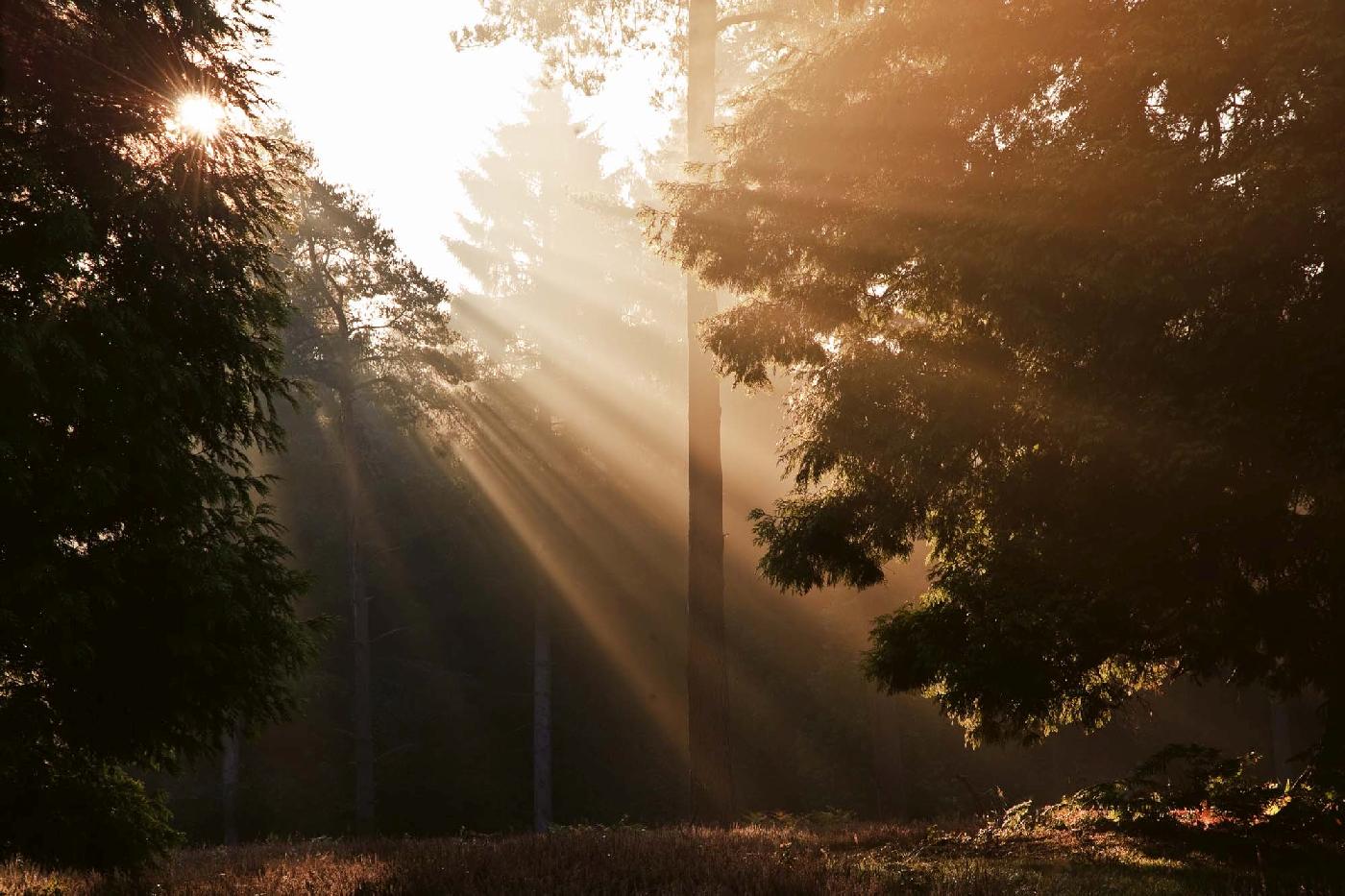 Vlies Fototapete - Sonnenschein durch Bäume 375 x 250 cm