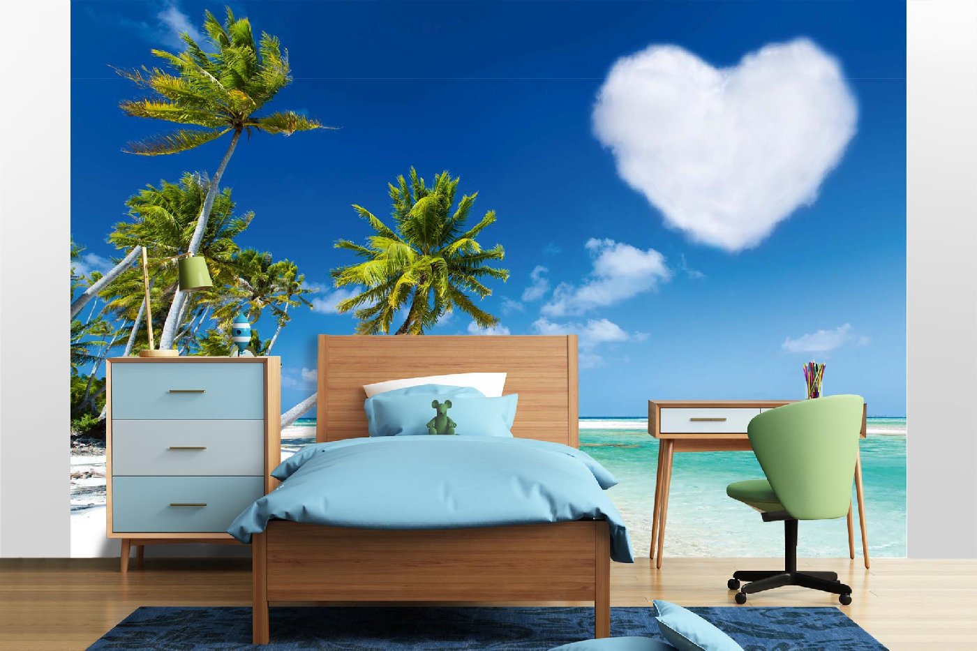Vlies Fototapete - Strand mit Herzwolke 375 x 250 cm