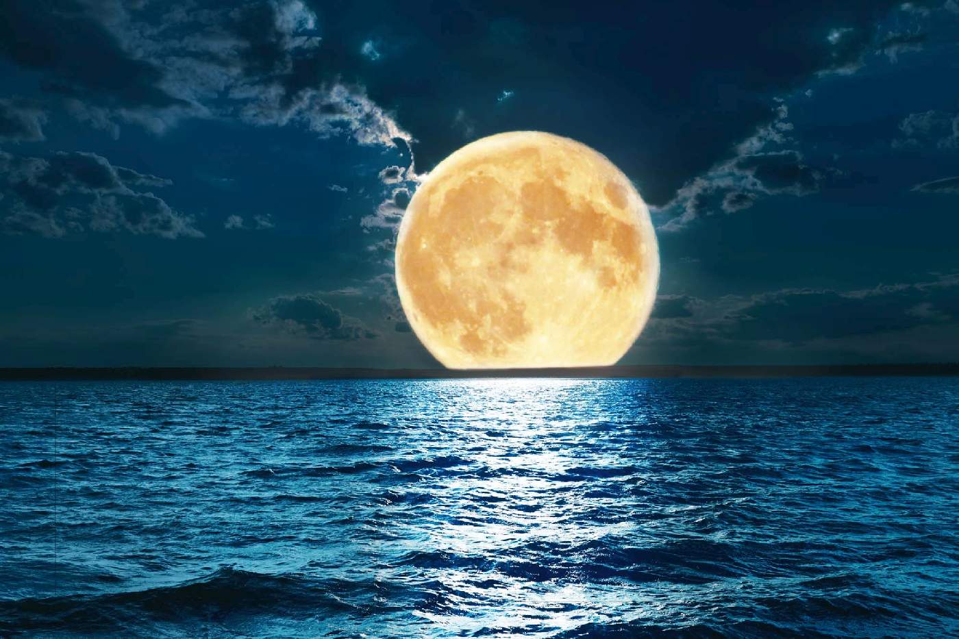 Vlies Fototapete - Supermond über Wasser 375 x 250 cm