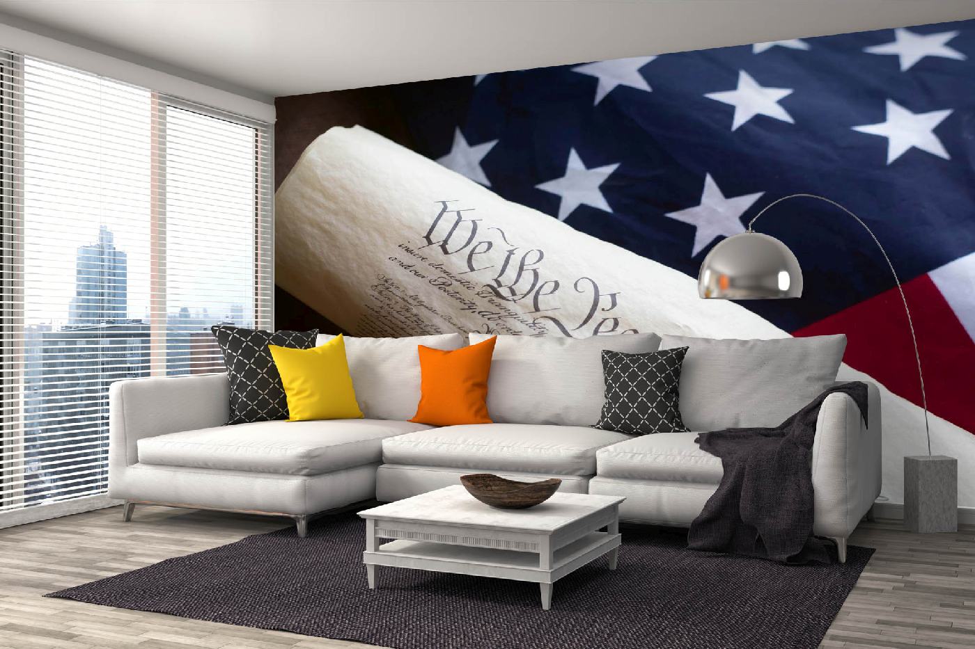 Vlies Fototapete - Verfassung mit USA-Flagge 375 x 250 cm