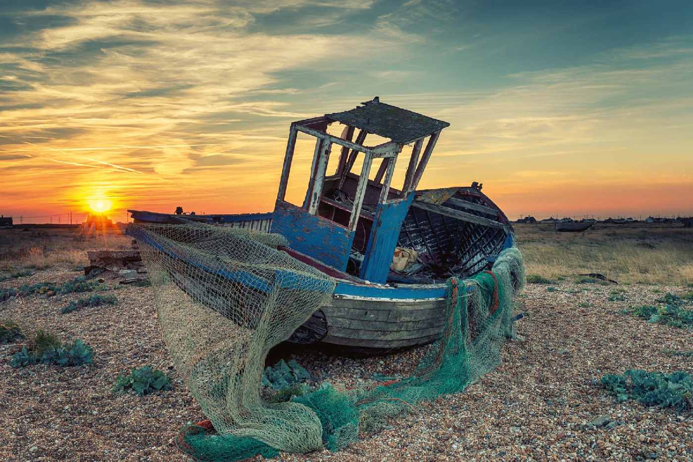 Vlies Fototapete - Verlassenes Fischerboot 375 x 250 cm