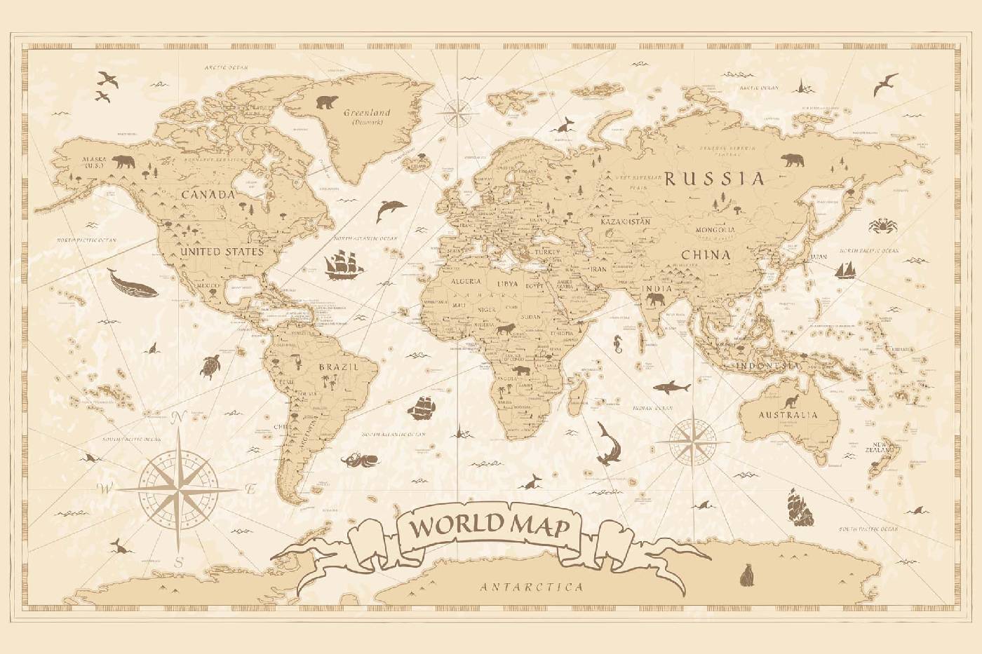 Vlies Fototapete - Vintage-Karte mit Piktogrammen 375 x 250 cm