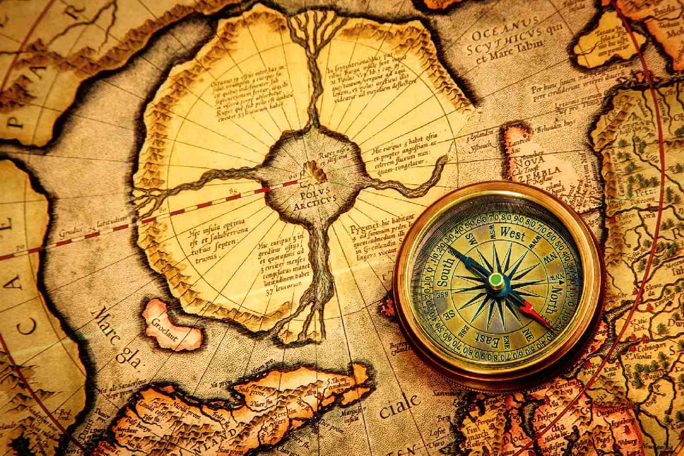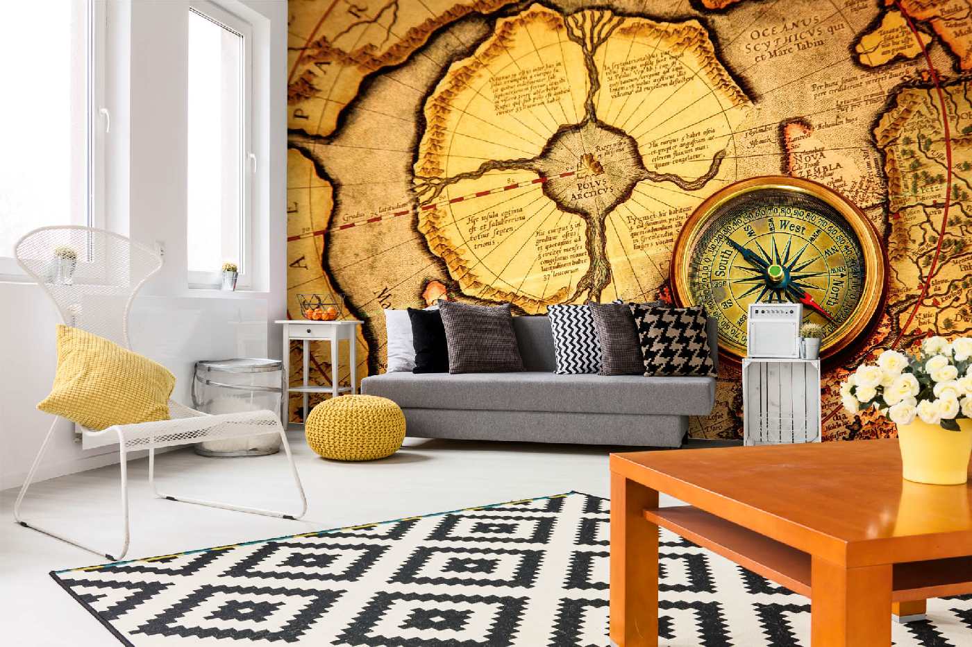 Vlies Fototapete - Vintage Kompass und Karte 375 x 250 cm
