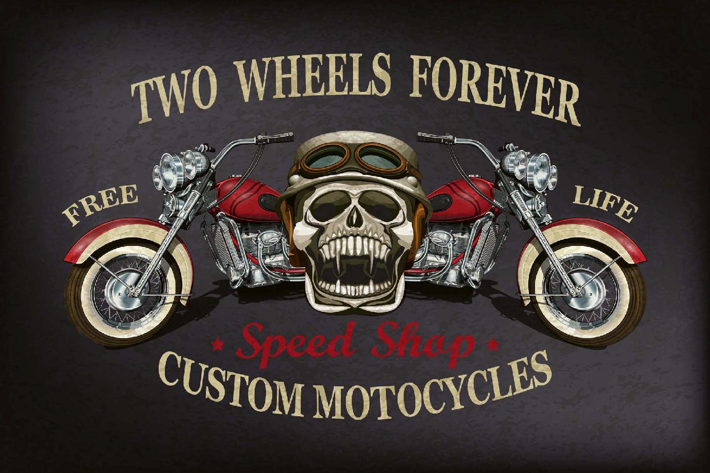 Vlies Fototapete - Vintage Motorrad Plakat 375 x 250 cm