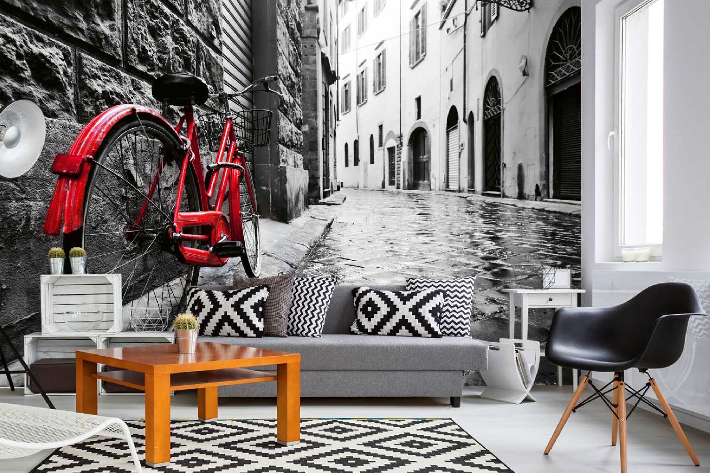 Vlies Fototapete - Vintage rotes Fahrrad 375 x 250 cm