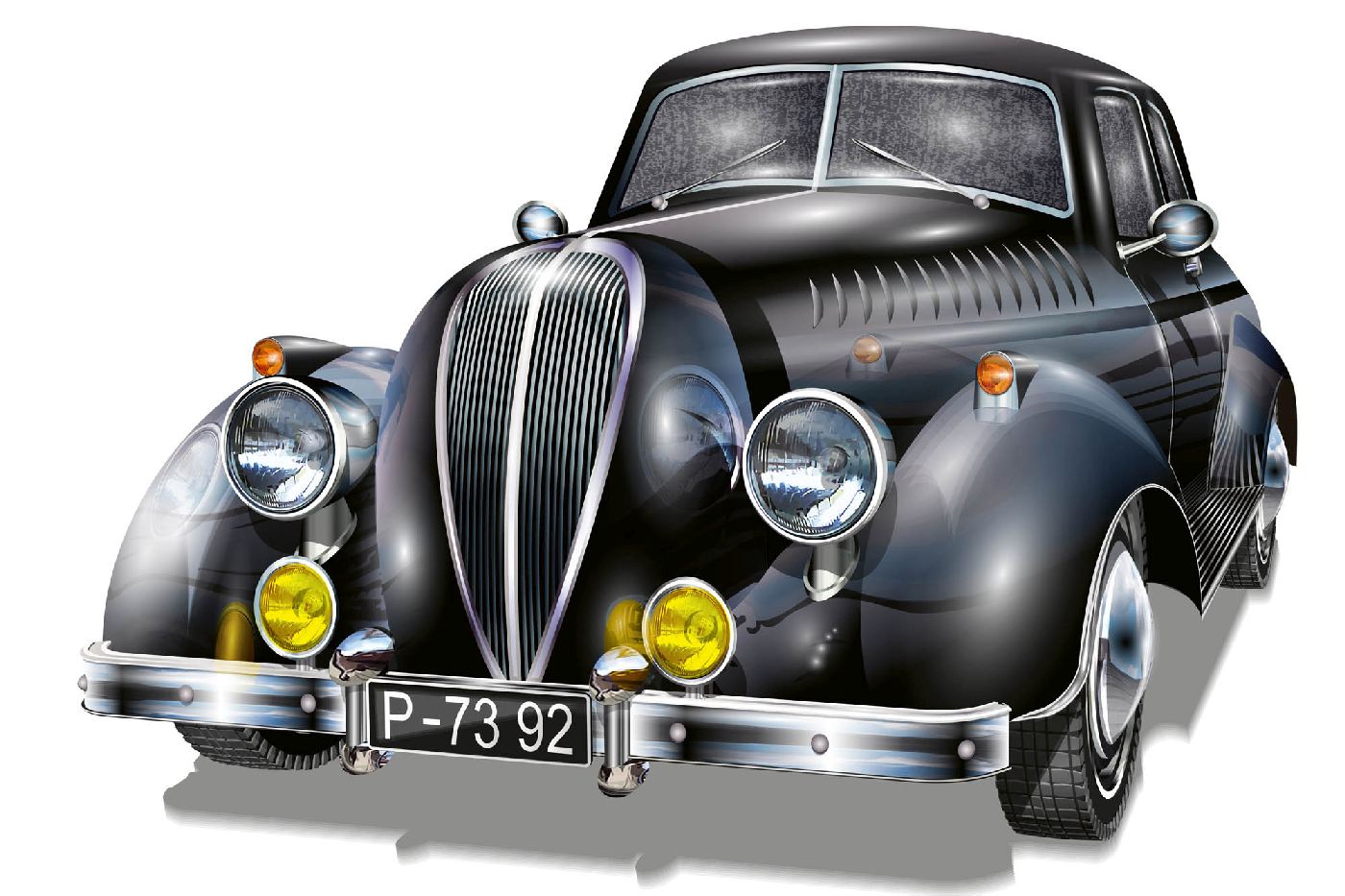 Vlies Fototapete - Vintage schwarzes Auto 375 x 250 cm