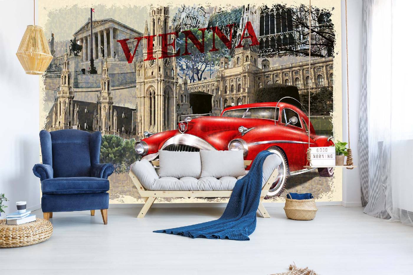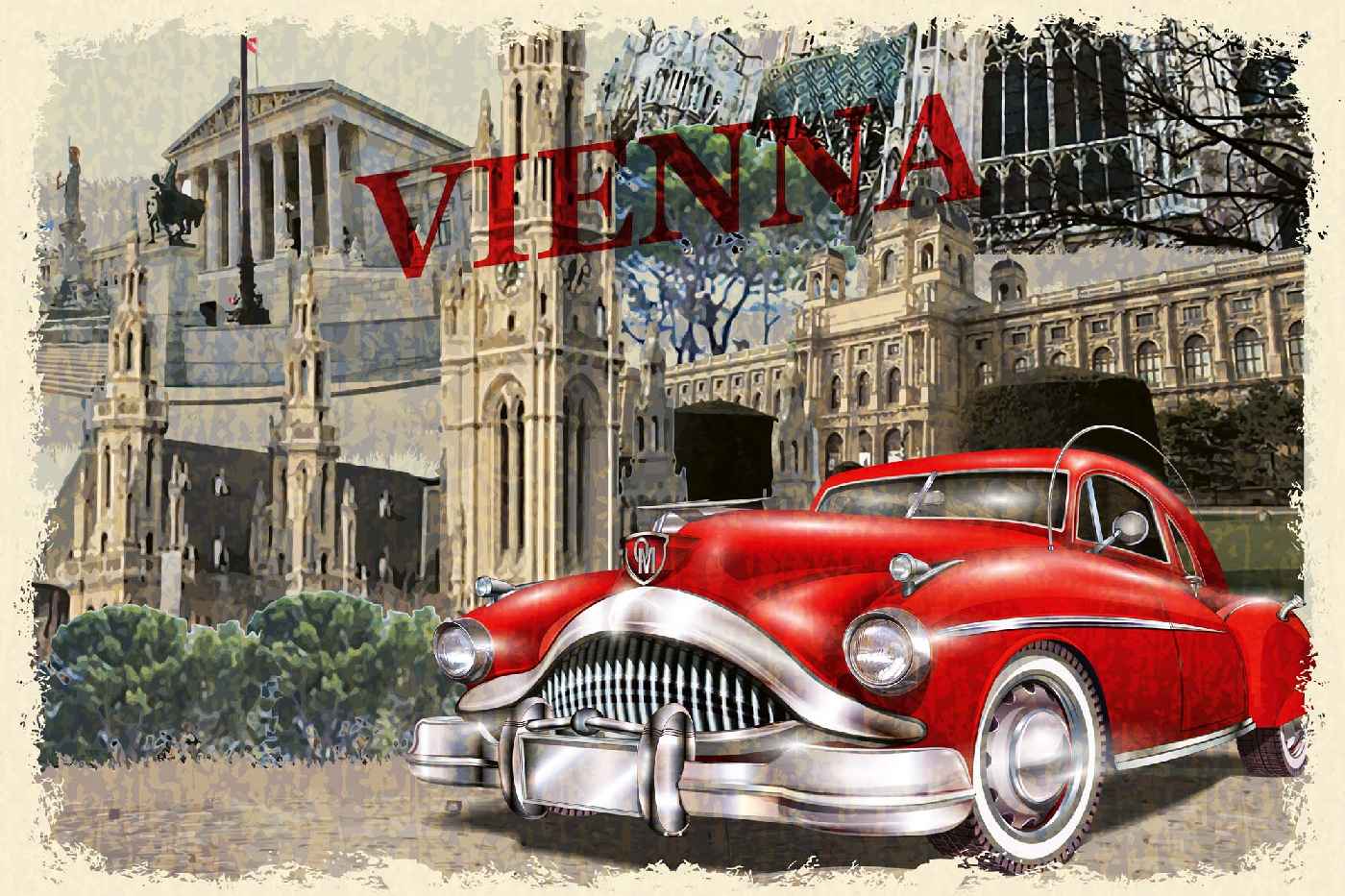 Vlies Fototapete - Vintage Wien Plakat 375 x 250 cm