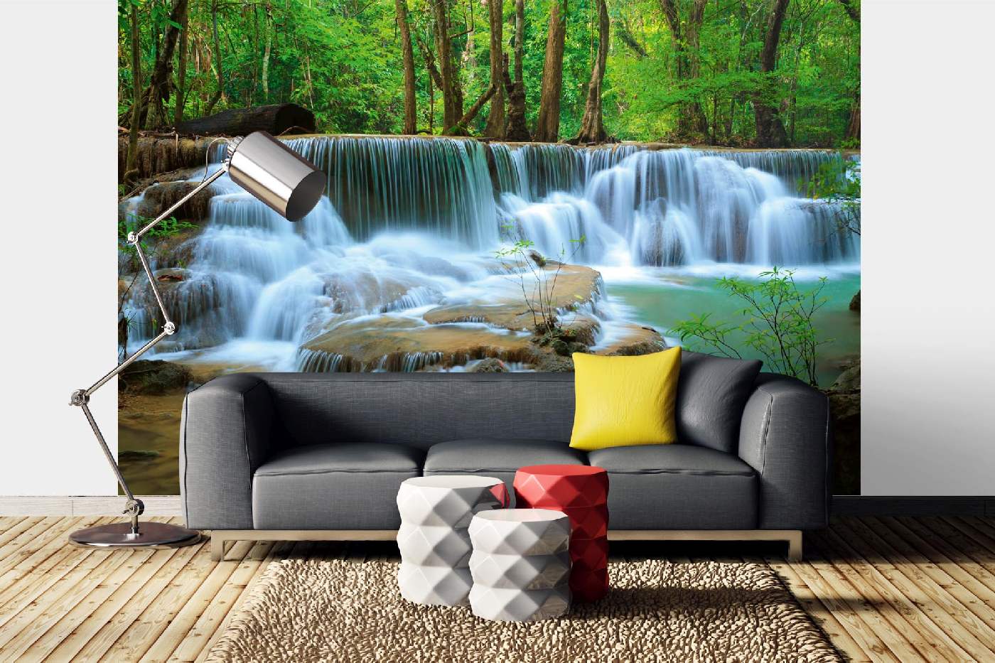 Vlies Fototapete - Wasserfall im tiefen Wald 375 x 250 cm