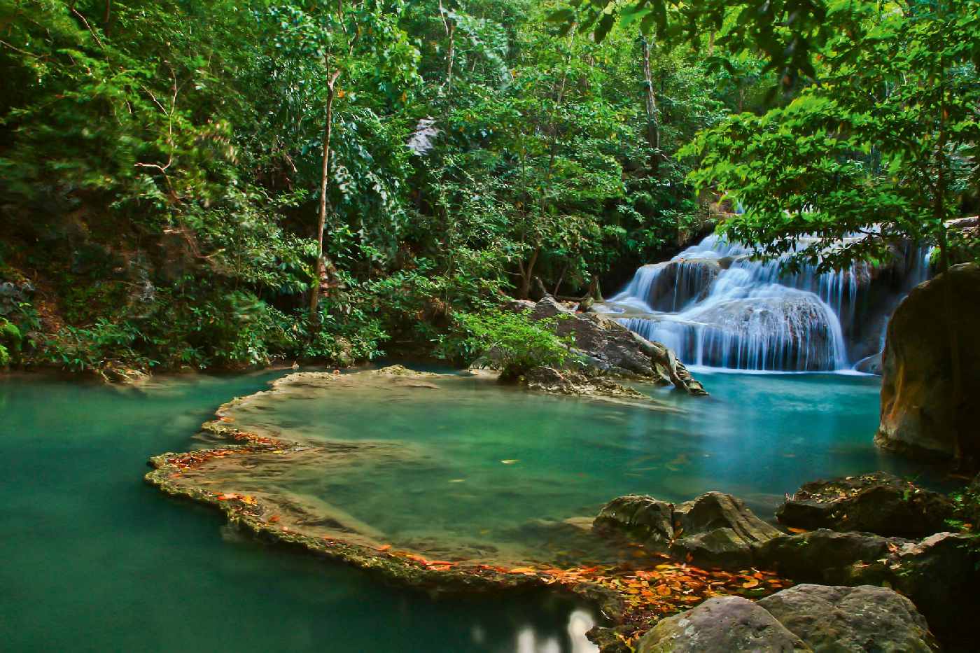 Vlies Fototapete - Wasserfall in Thailand 375 x 250 cm