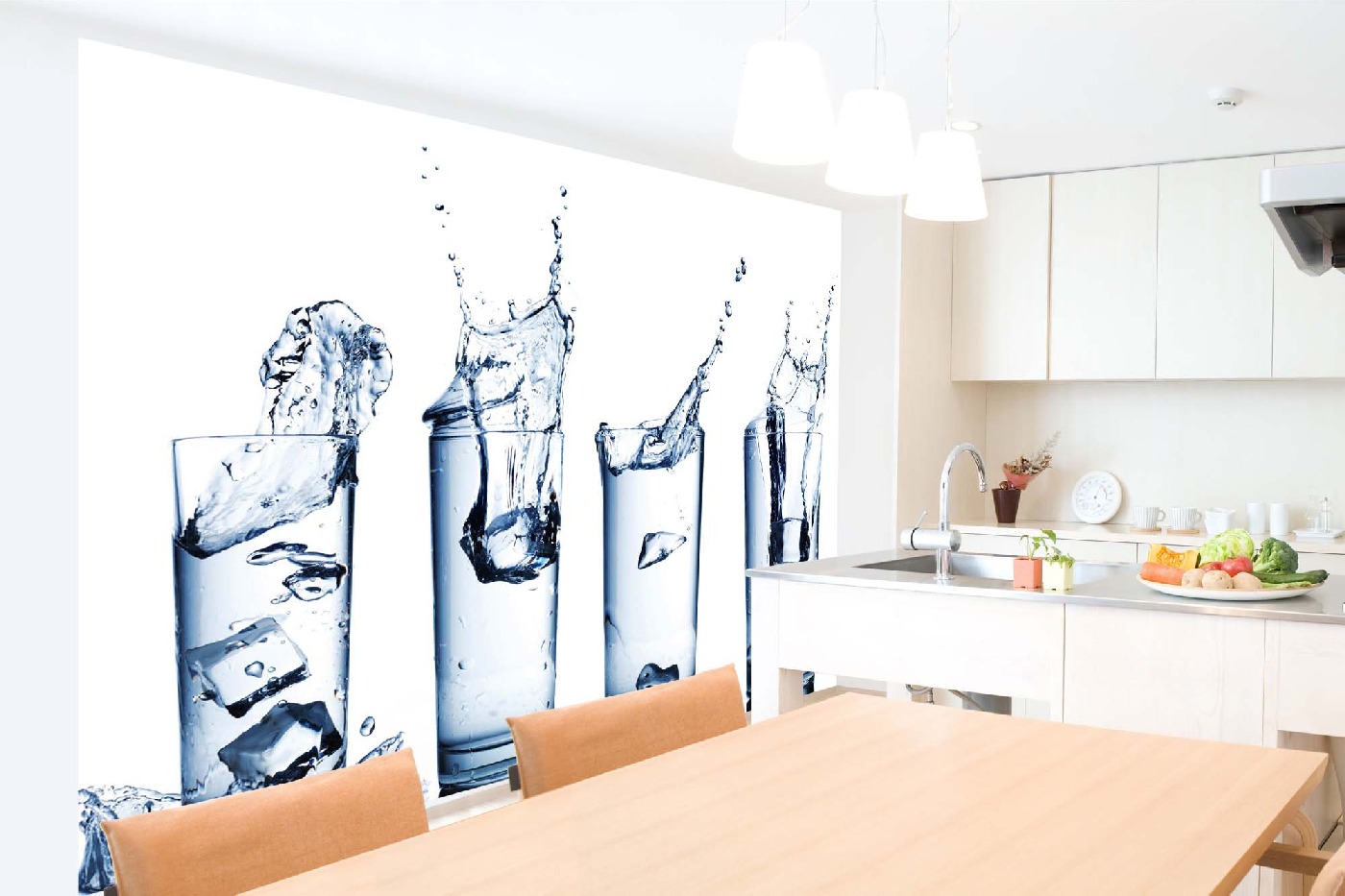 Vlies Fototapete - Wasserspritzer in Gläsern 375 x 250 cm