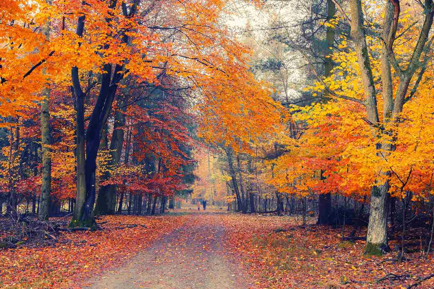 Vlies Fototapete - Weg im nebligen Park 375 x 250 cm