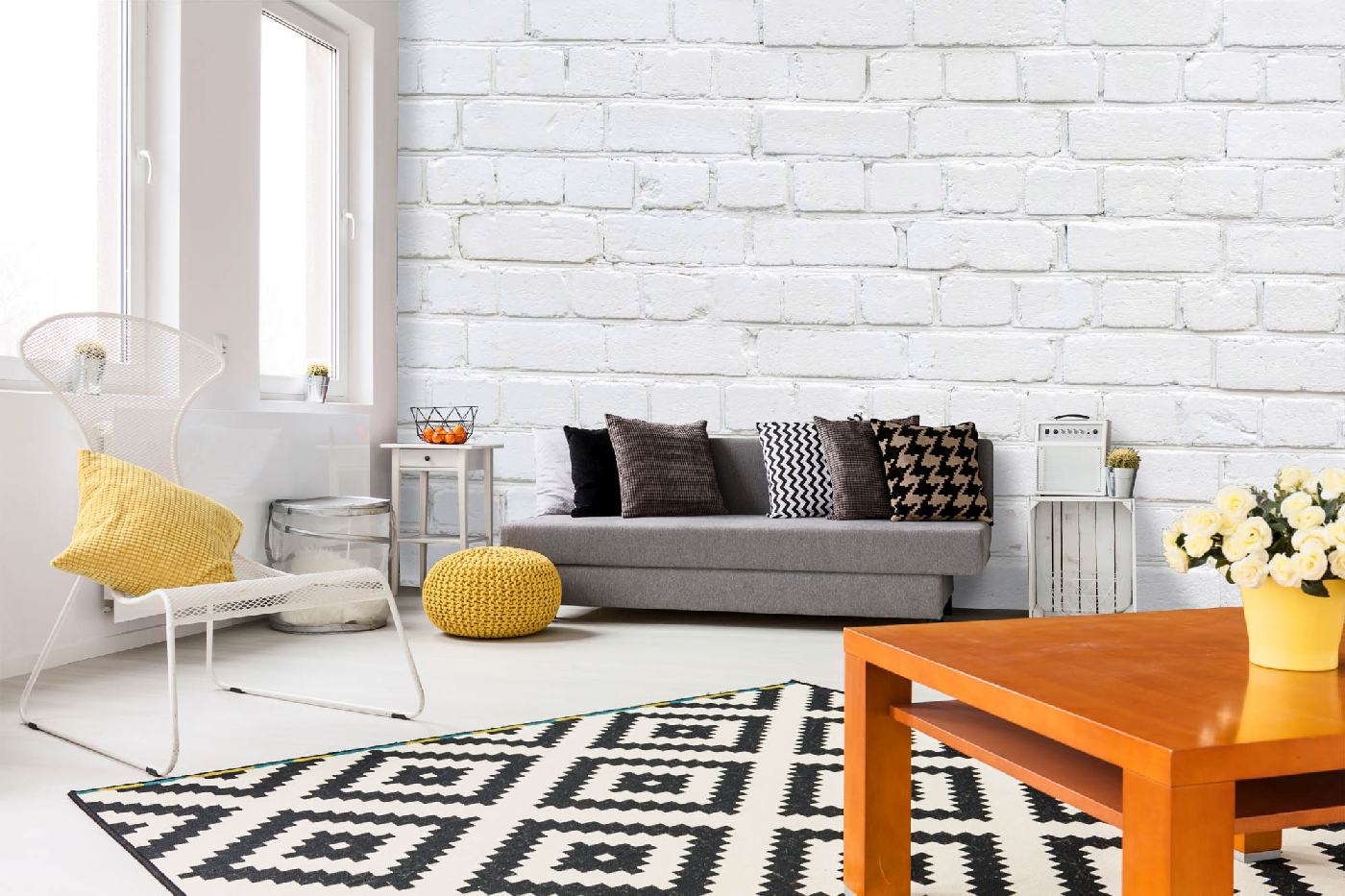 Vlies Fototapete - Weiße Wand aus Ziegeln 375 x 250 cm