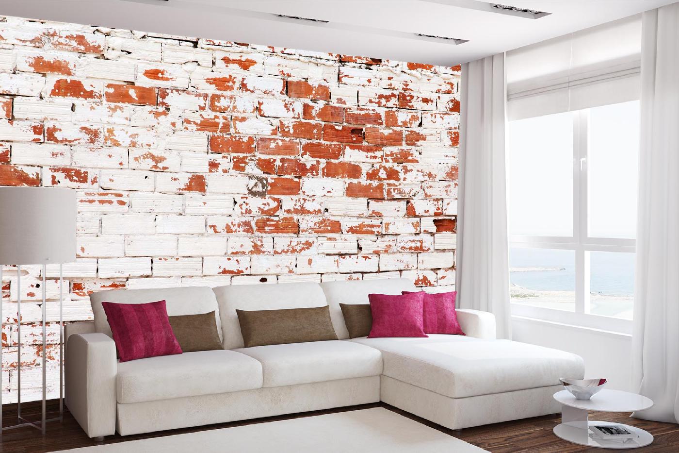 Vlies Fototapete - Weiße Ziegelwand 375 x 250 cm