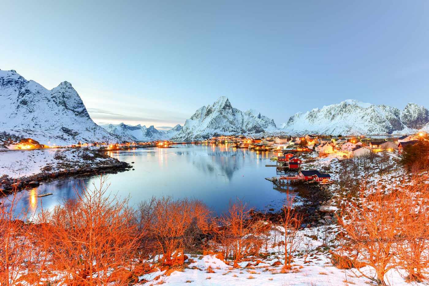 Vlies Fototapete - Winter in Reine 375 x 250 cm