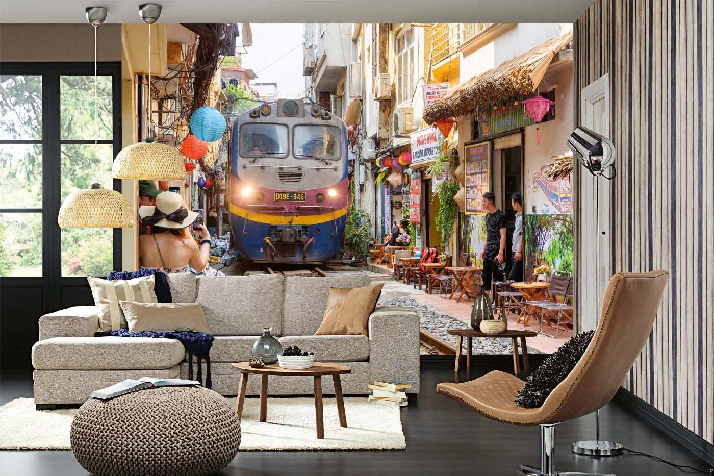 Vlies Fototapete - Zug in Hanoi 375 x 250 cm