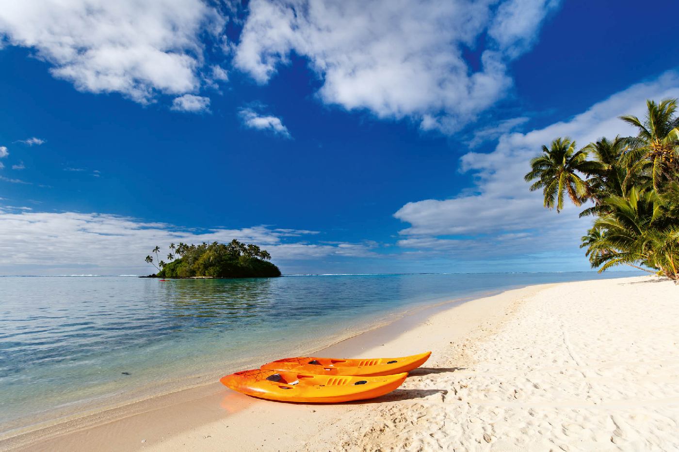 Vlies Fototapete - Zwei Kajaks am Strand 375 x 250 cm