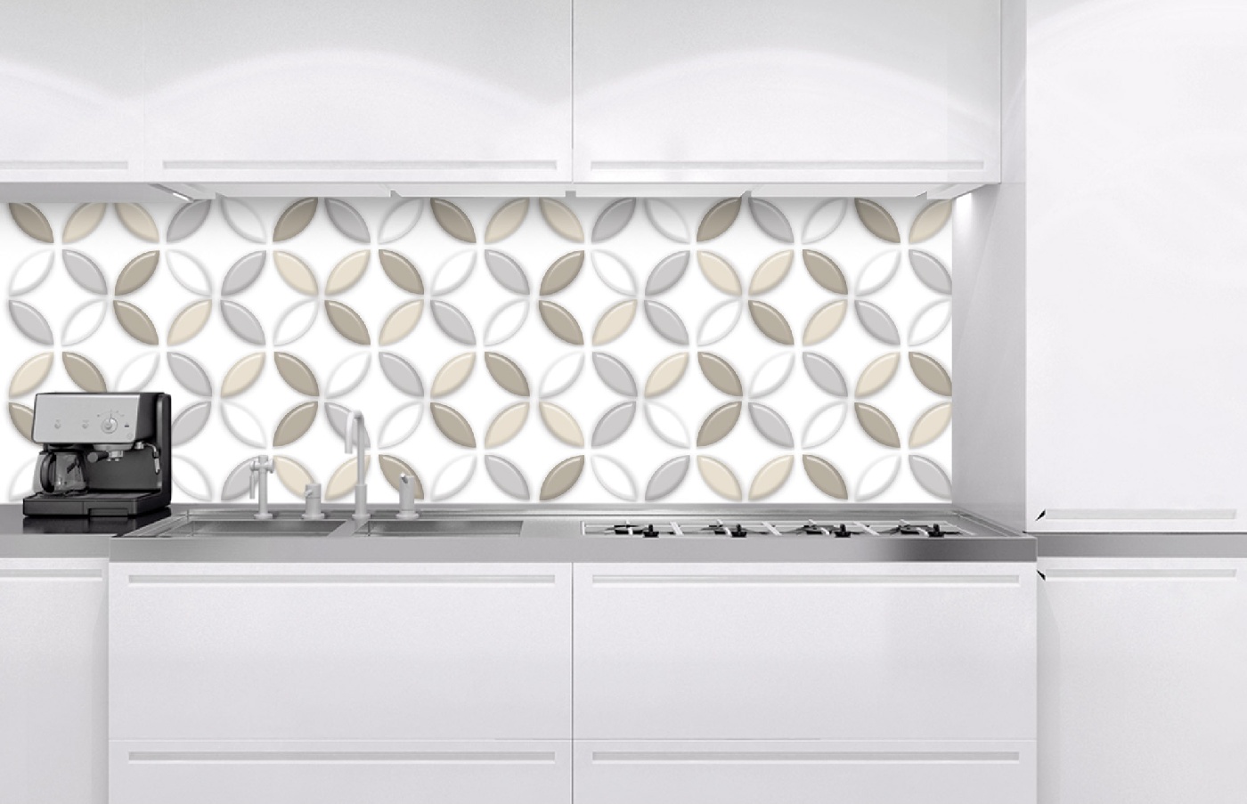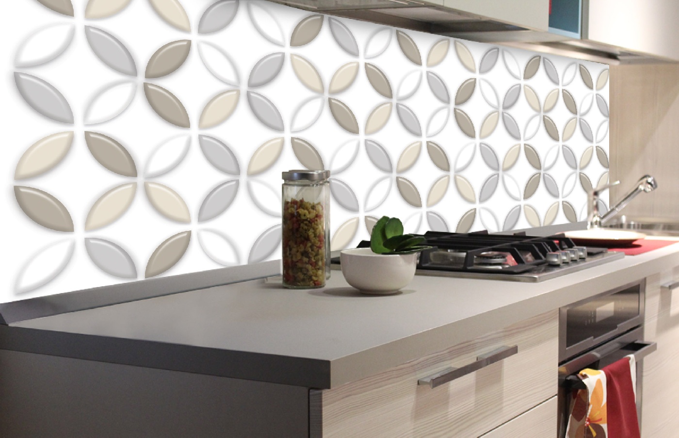 Küchenrückwandfolie lässt sich ausschließlich auf die nicht-saugfähige Unterlage kleben (Glas, Holz, keramische Fließen).