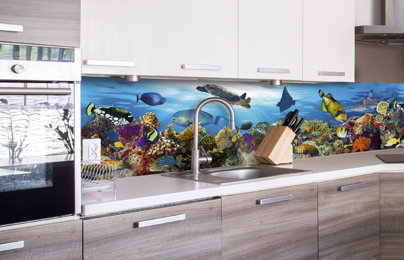Küchenrückwand Folie - Fische im Ozean 260 x 60 cm