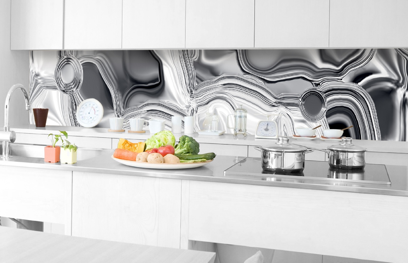 Die neusten Trends im Bereich Küchengestaltung machen auf selbstklebende Fototapeten für die Küchenrückwand aufmerksam. Anstelle einer Fliesenwand in der Küche kann die Rückwand mit einer Folie bedeckt werden.