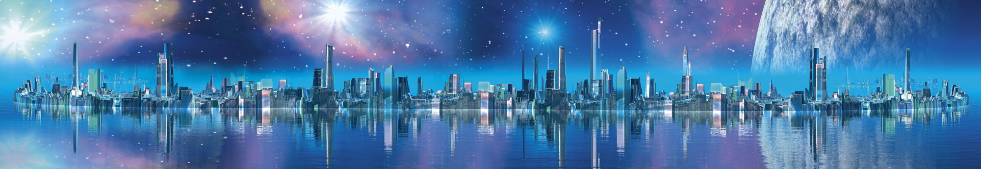 Küchenrückwand Folie - Futuristische Stadt 350 x 60 cm