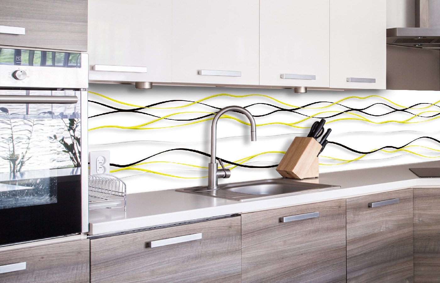 Küchenrückwand Folie - gelbe Wellen 260 x 60 cm