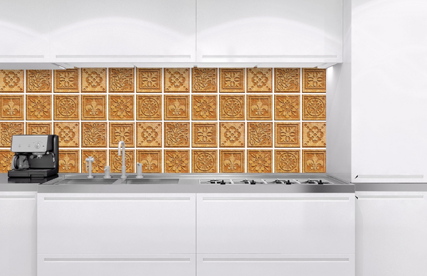 Küchenrückwandfolie lässt sich ausschließlich auf die nicht-saugfähige Unterlage kleben (Glas, Holz, keramische Fließen).