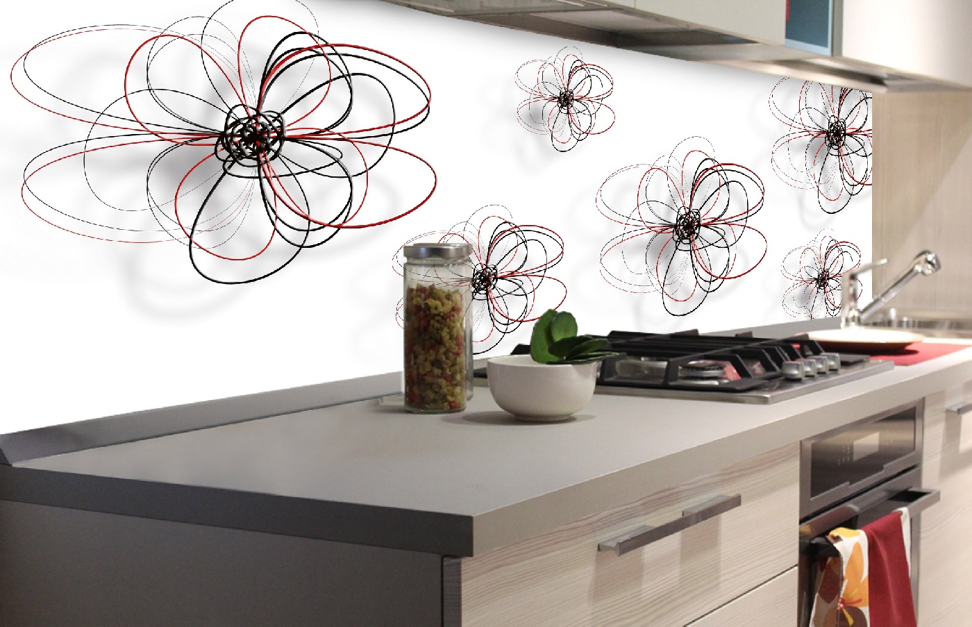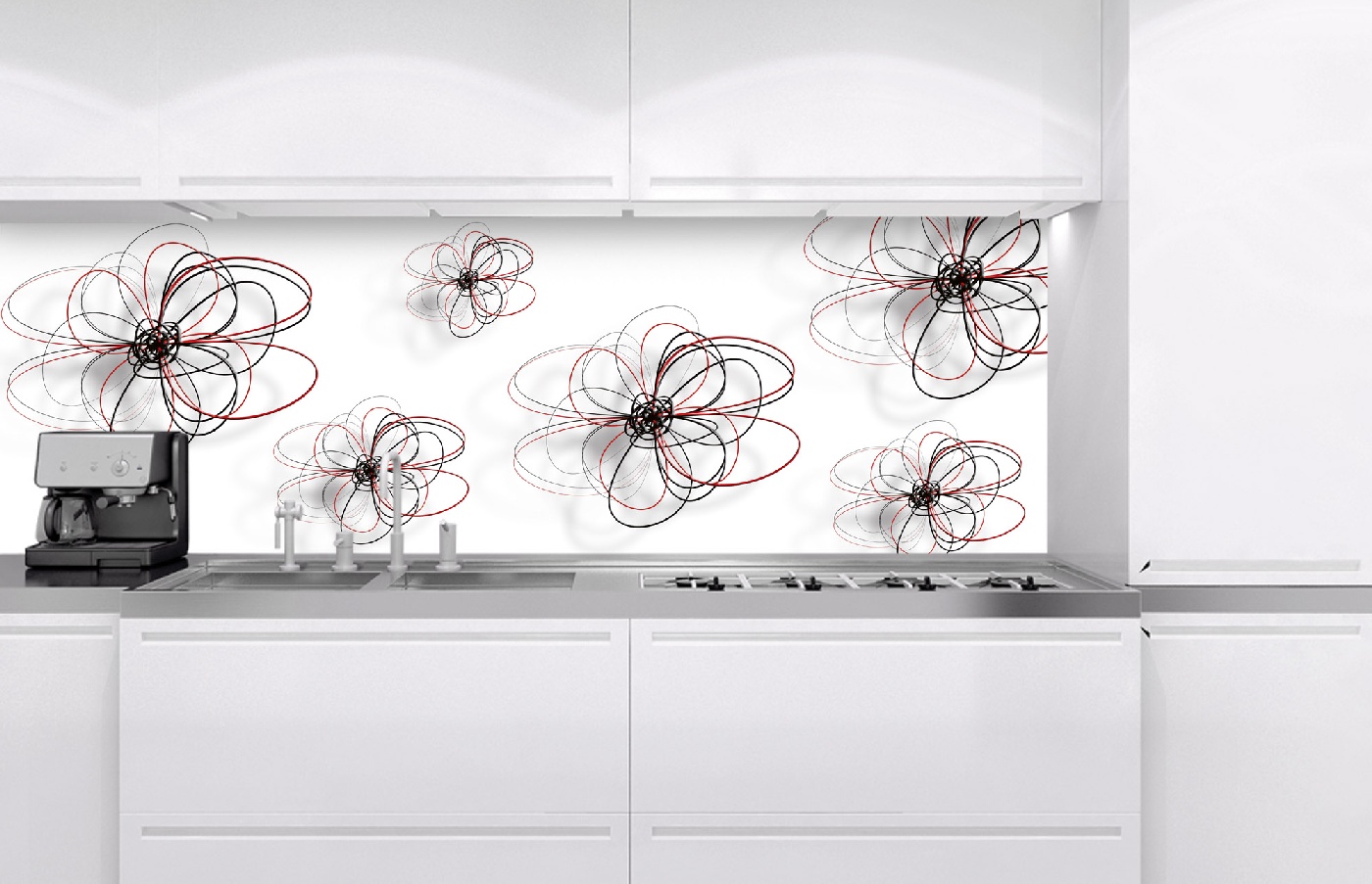 Küchenrückwand Folie - Rot-schwarze Blumen 180 x 60 cm