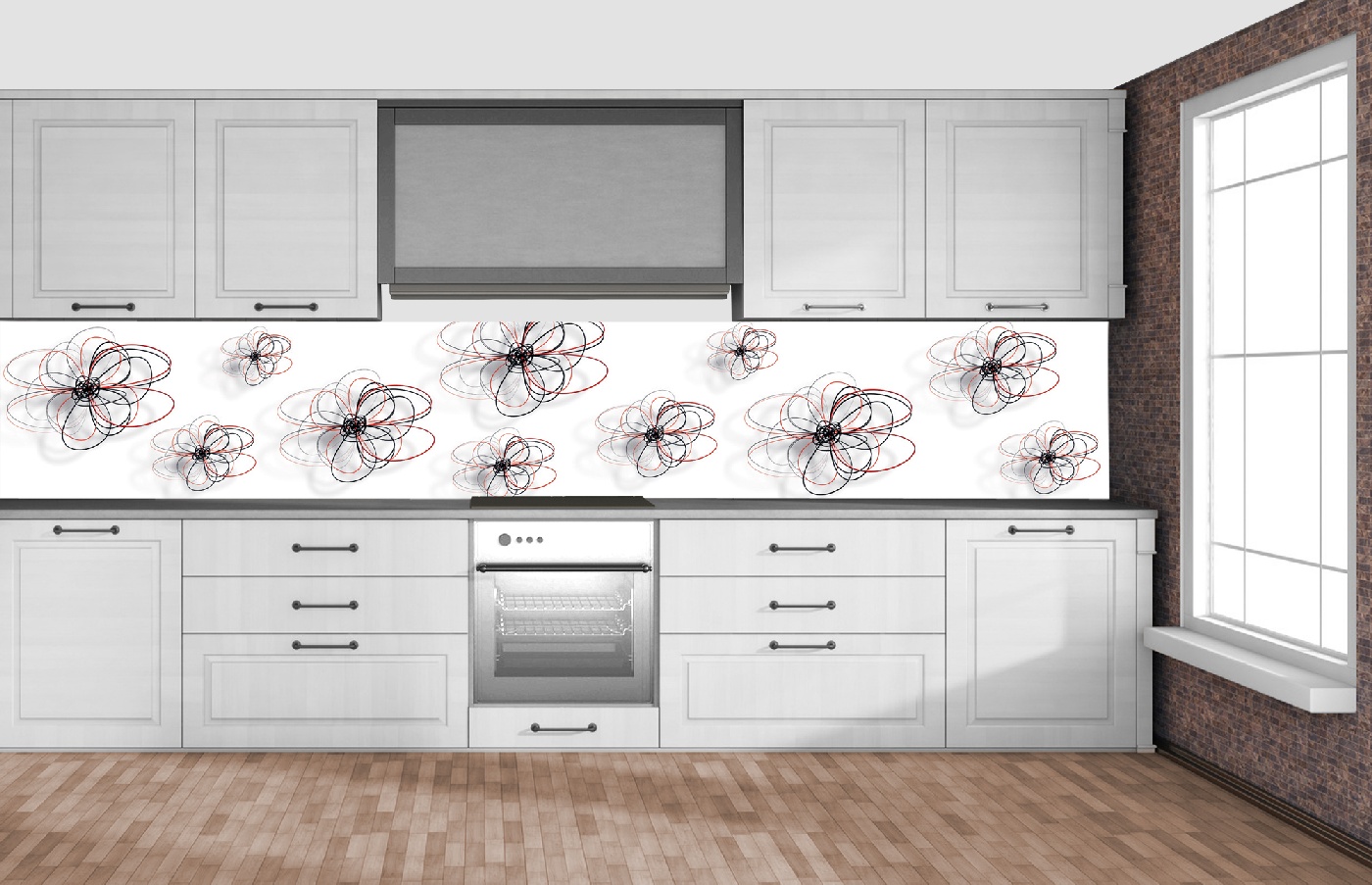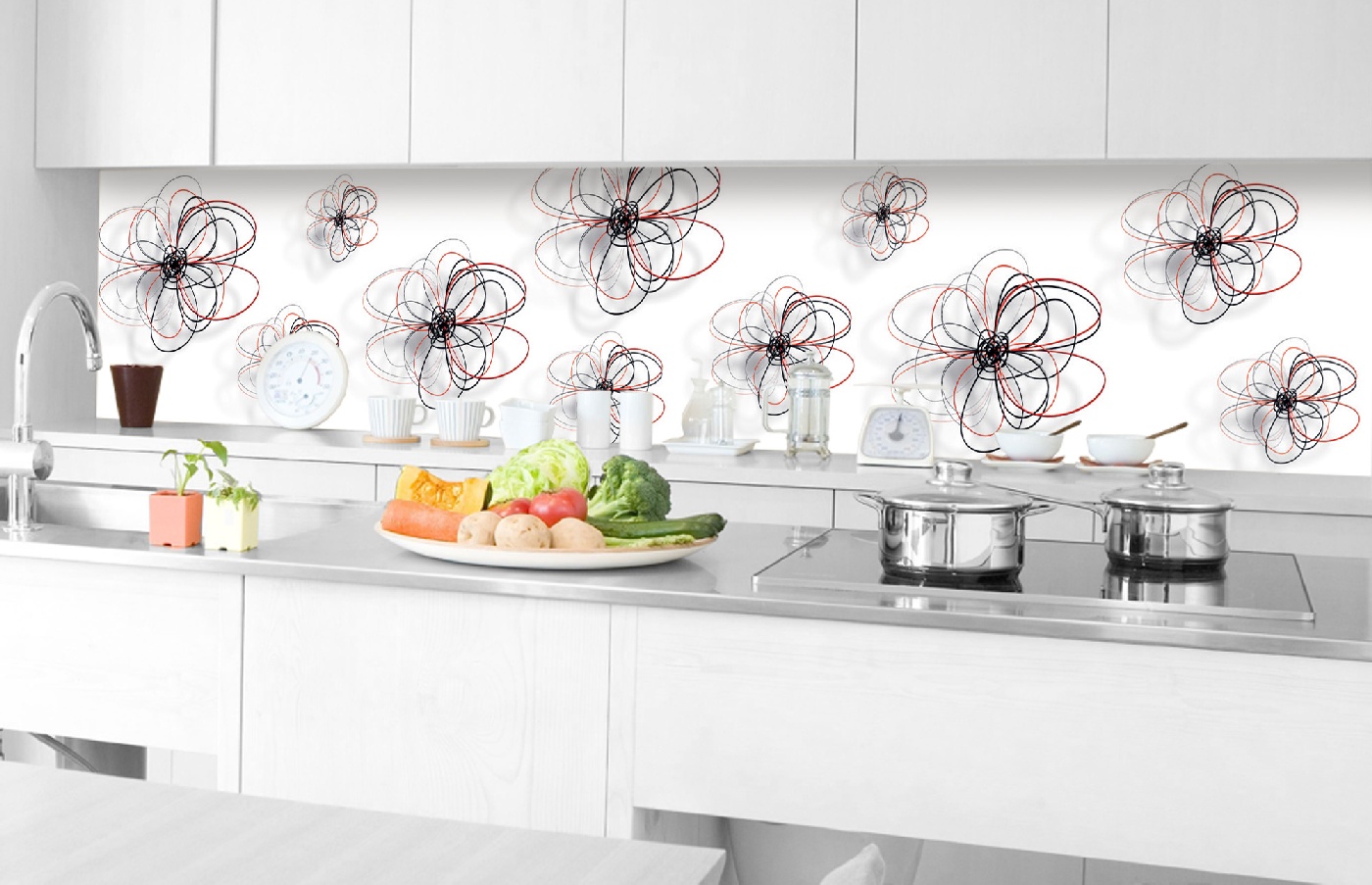 Küchenrückwand Folie - Rot-schwarze Blumen 350 x 60 cm